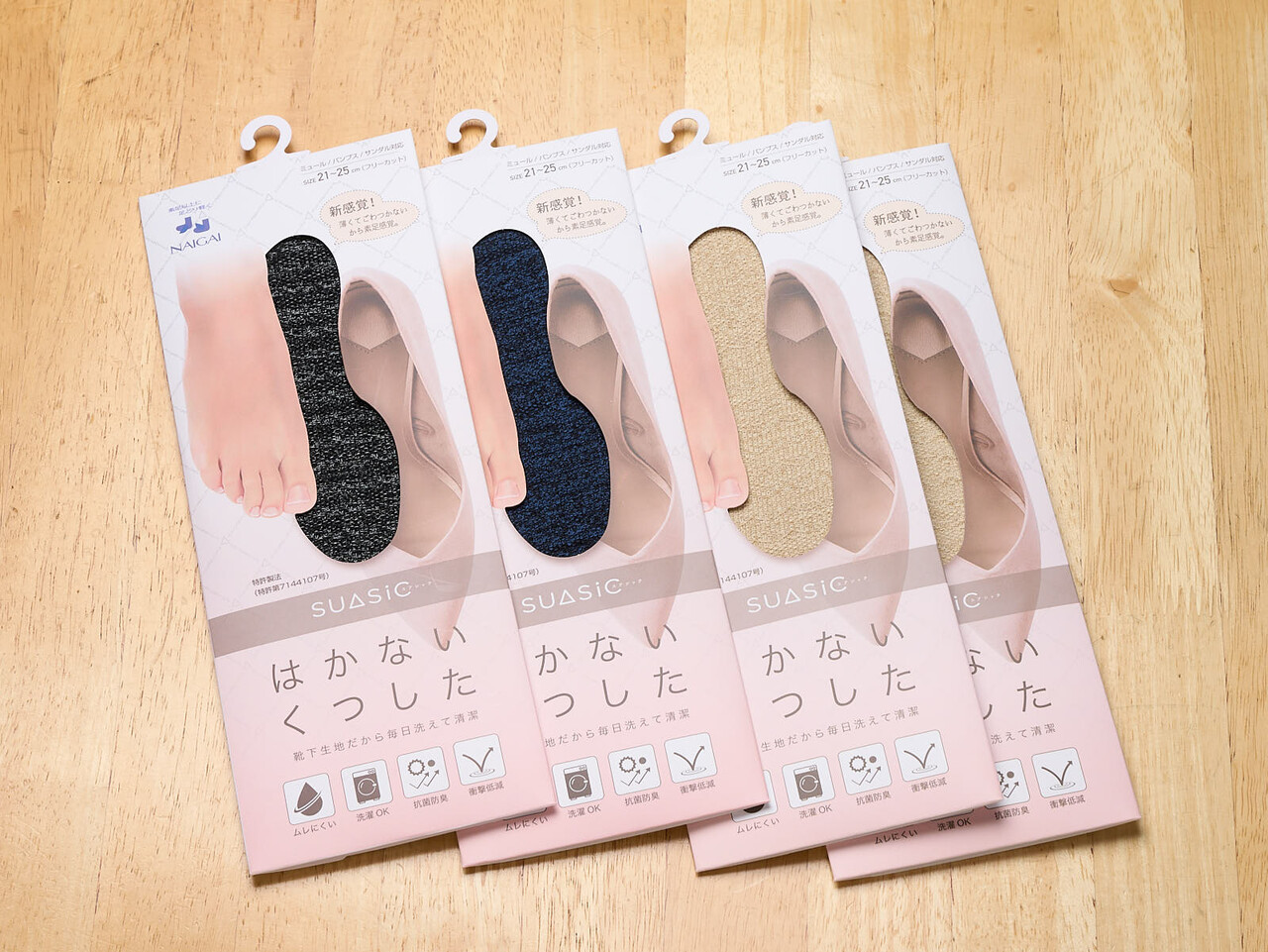 ナイガイ公式オンラインショップではかないくつしたがプラス1足キャンペーンやってたので4足ぽちっと。オレンジは人気のようで品切れ(一瞬在庫復活したのは見たけど気づいたらまた品切れしてた)だったのでベージュx2・ブラック・インディゴで。送料無料(といってもスアシックだけならメール便で220円なんだけど)にするために母の日プレゼント用にエプロンもぽちっと。5/7夕方にぽちって5/11午前配達(午前指定してなかったらきっと前日の午後にはとどいていただろう)。