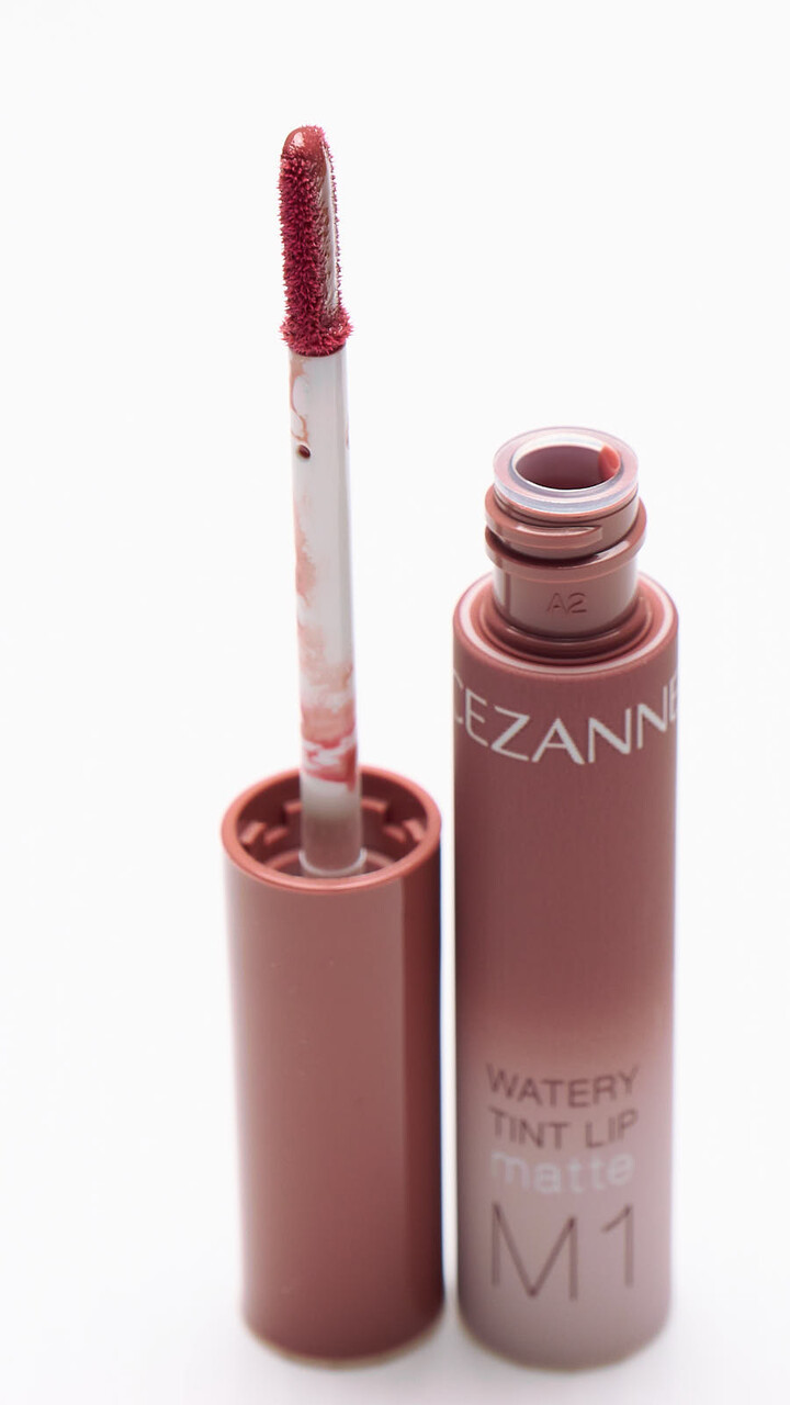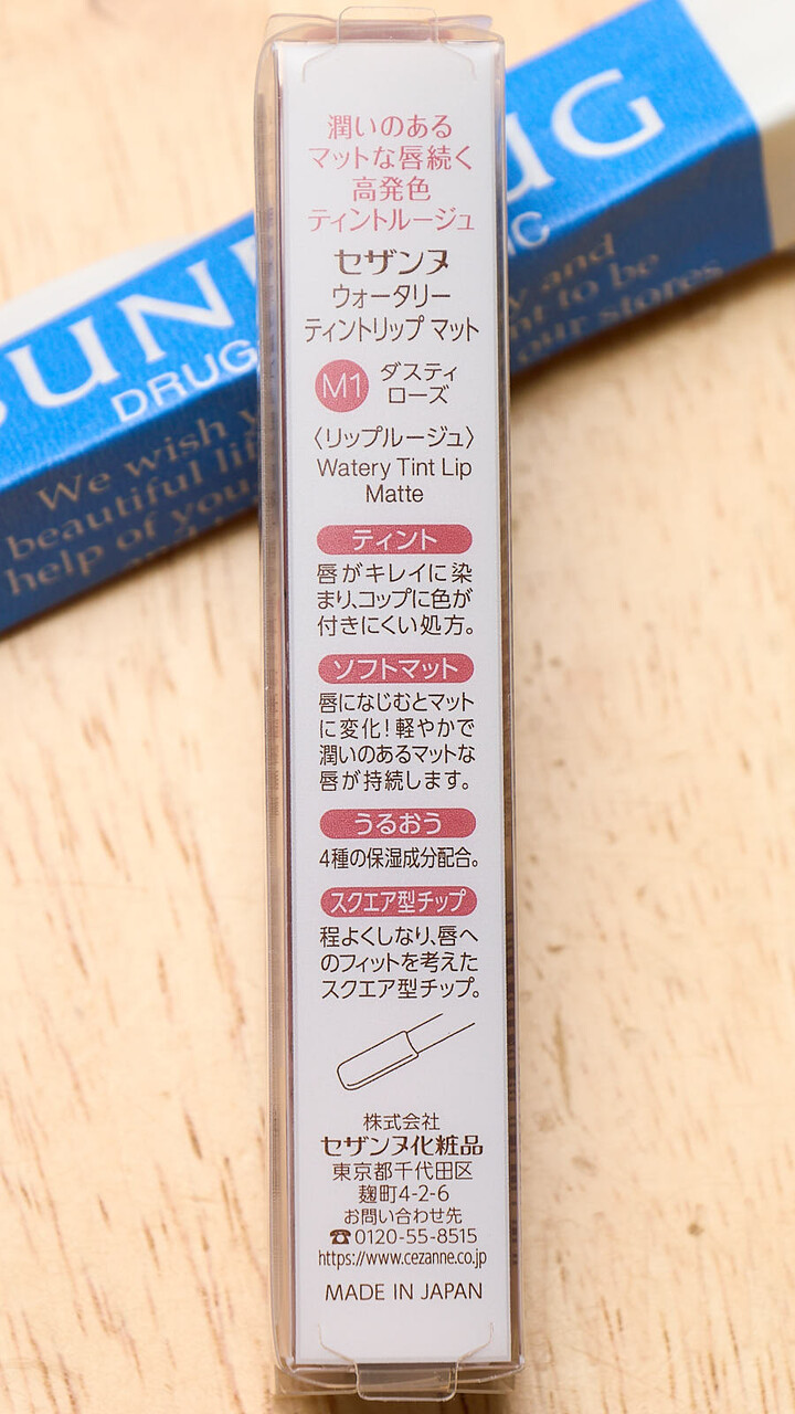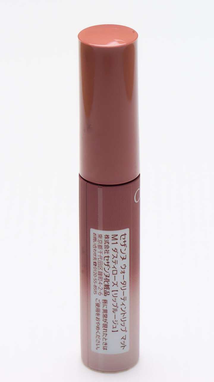 近所のサンドラッグでセザンヌ ウォータリーティントリップ マット M1(ダスティローズ)を買ってきた。税込660円。店頭で試し塗りした感じ、けっこう肌が透けて透明度たかいなとおもってはいたが、実際リップを塗ってみるとかなり発色はひかえめで茶色にしかみえない。チップはしなってぬりやすいし形がひらぺったいので口角のところがぬりやすい。rom&ndのはしならないのと形が丸なので。