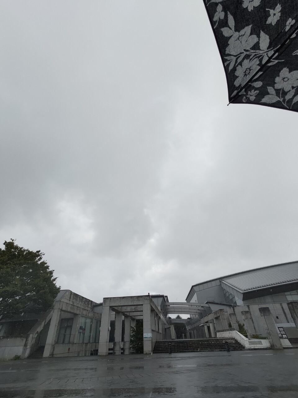 曇ってたけど日傘さして歩いてたら突然雨がふってきた。風があったのでズボンはけっこう濡れた。
