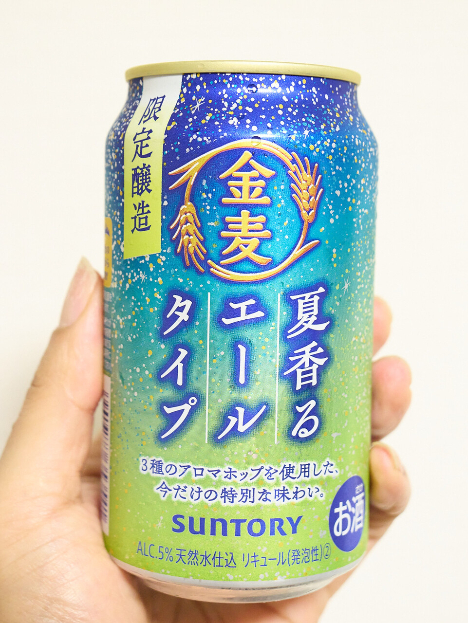 お盆休みだし、蒸し暑いし、昼間っからビールのむのはちょっとなぁとおもってダイエーのノンアルコーナーにいったら金麦〈夏香るエールタイプ〉が目についたのでおもわずかってしまった。