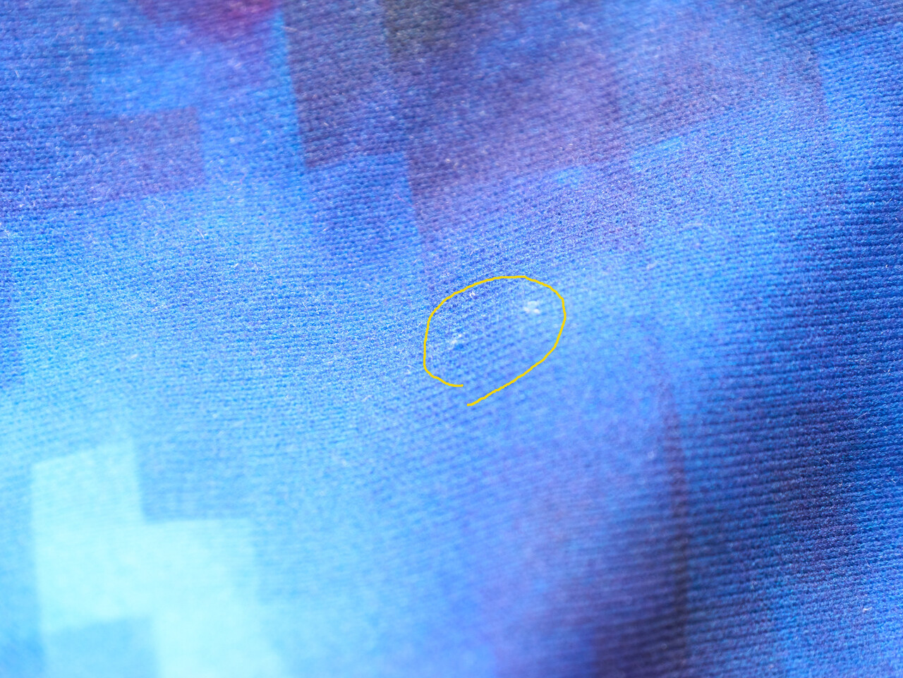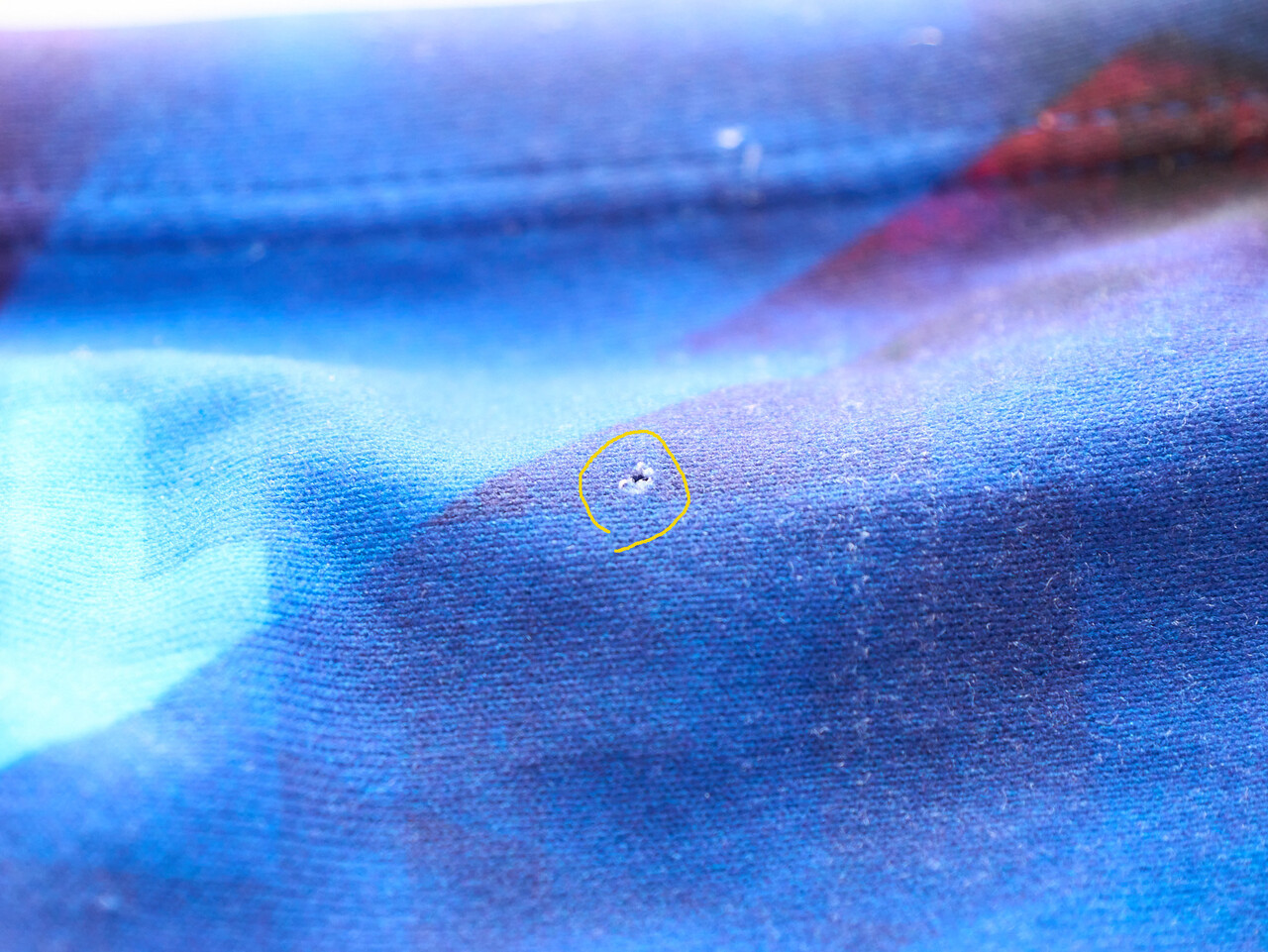 穴に気づいてから何回かはいたが、穴が広がってくるようすはないので糸で補修しなくても放置でよさそう。どこかでひっかけて穴があいたのかなぁ、おぼえてない。