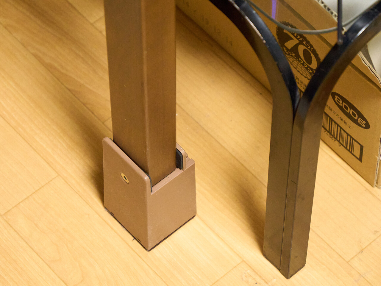 ここずっと腰が痛いのが治らなくて、その原因は在宅勤務のときの座っている姿勢がよくないのではないか? 机も椅子もニトリで、椅子は高さがかえられるけど机は高さが変えられないので、椅子をベストの高さに調節すると机が低すぎるという問題があった。 世の中には机の高さが変えられるものもある(電動のとか手動のとか)のだが机を買い替えるのも(サンクコスト的に)残念な感じなので机に下駄をはかせることにした。