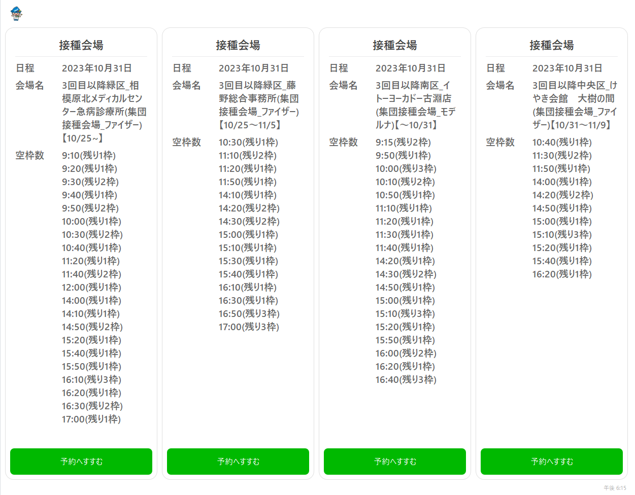 - 2023-05-24 接種券が来たときに予約しようとしたら、まだ高リクスの人だけが対象で予約できず。