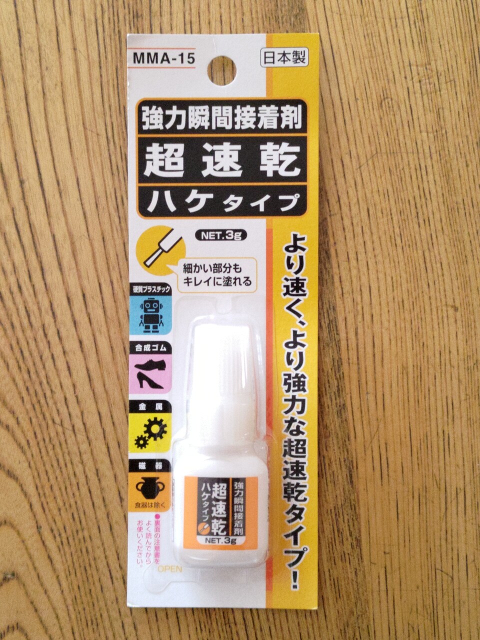 プールにいってないけどジェルネイルの先っぽがういてきたのでジェルネイル用の瞬間接着剤を買おうと百均でさがしたがなくて、しかたなく文房具売り場でさがしたらハケでぬるのを売ってたので買ってみた。