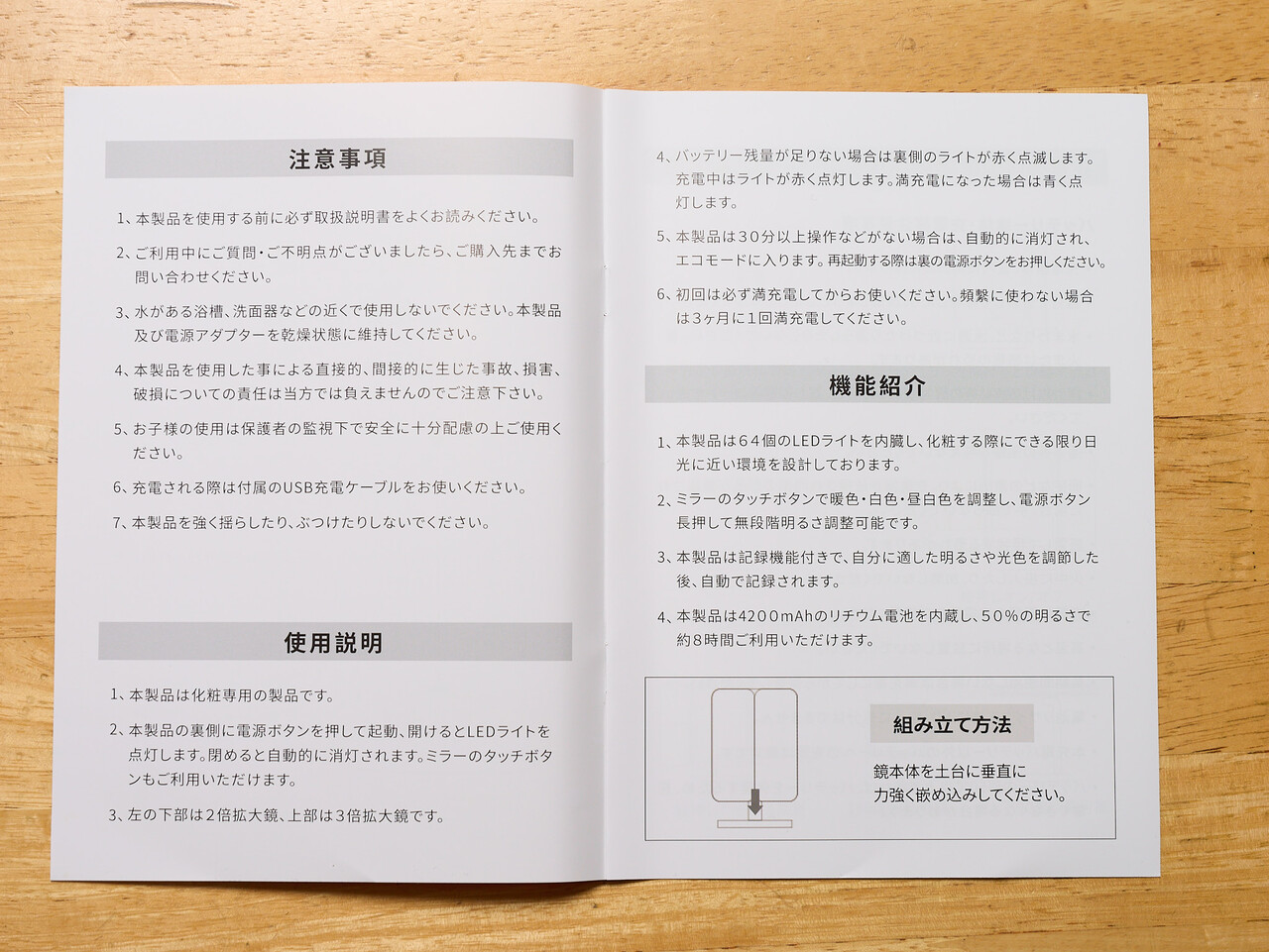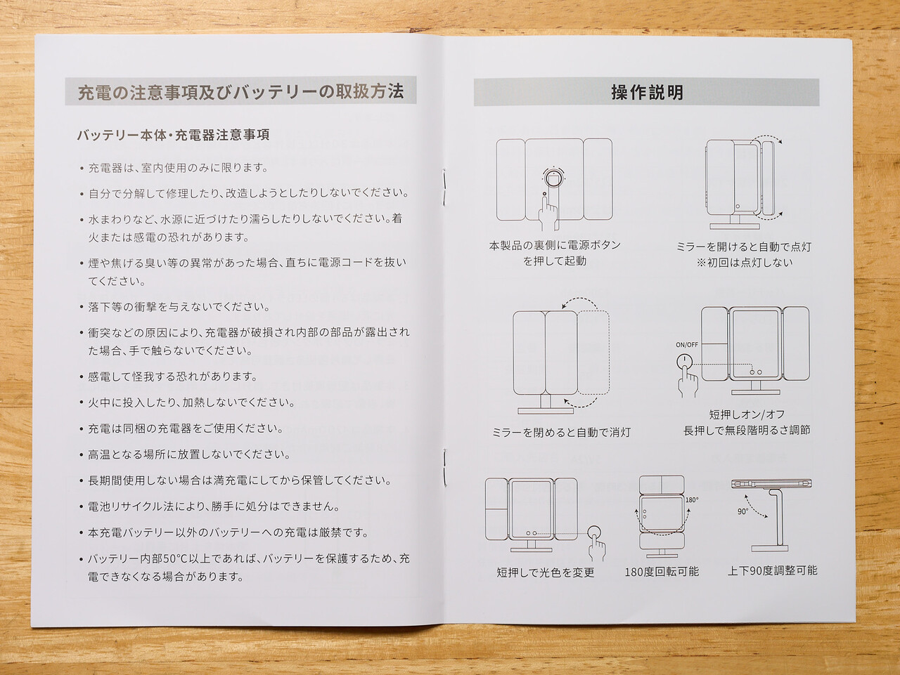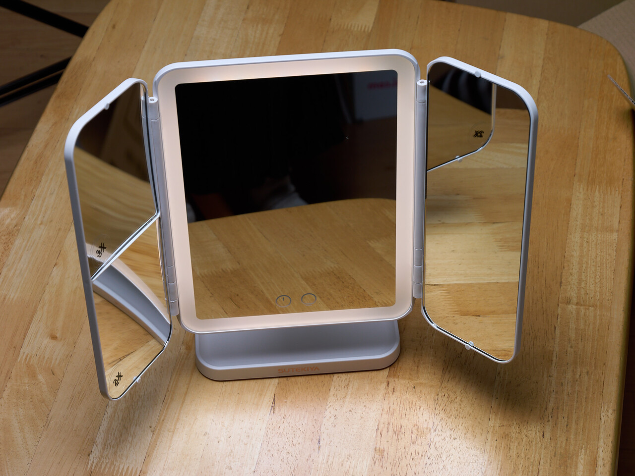 購入するまえに三面鏡のメリットを調べたら顔を動かさずに左右を見比べられるというのが挙げられていてなるほどなとおもったのだが、この卓上ミラーは左側は拡大鏡なので見比べられないじゃんと気づいて、気づくの遅かった。中華製はこういうのがあるんだよな。