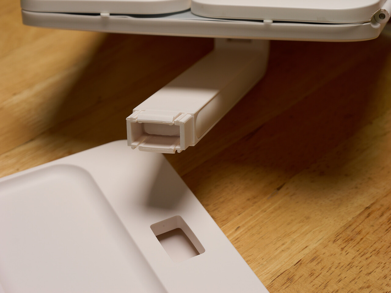 唯一の組み立て工程。本体を台座に差し込む。取り外しできる構造ではないので、持ち運びには適してないな。