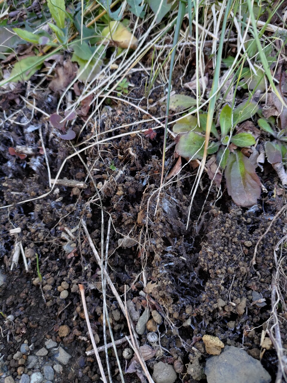 朝は寒い。霜柱がたってた。