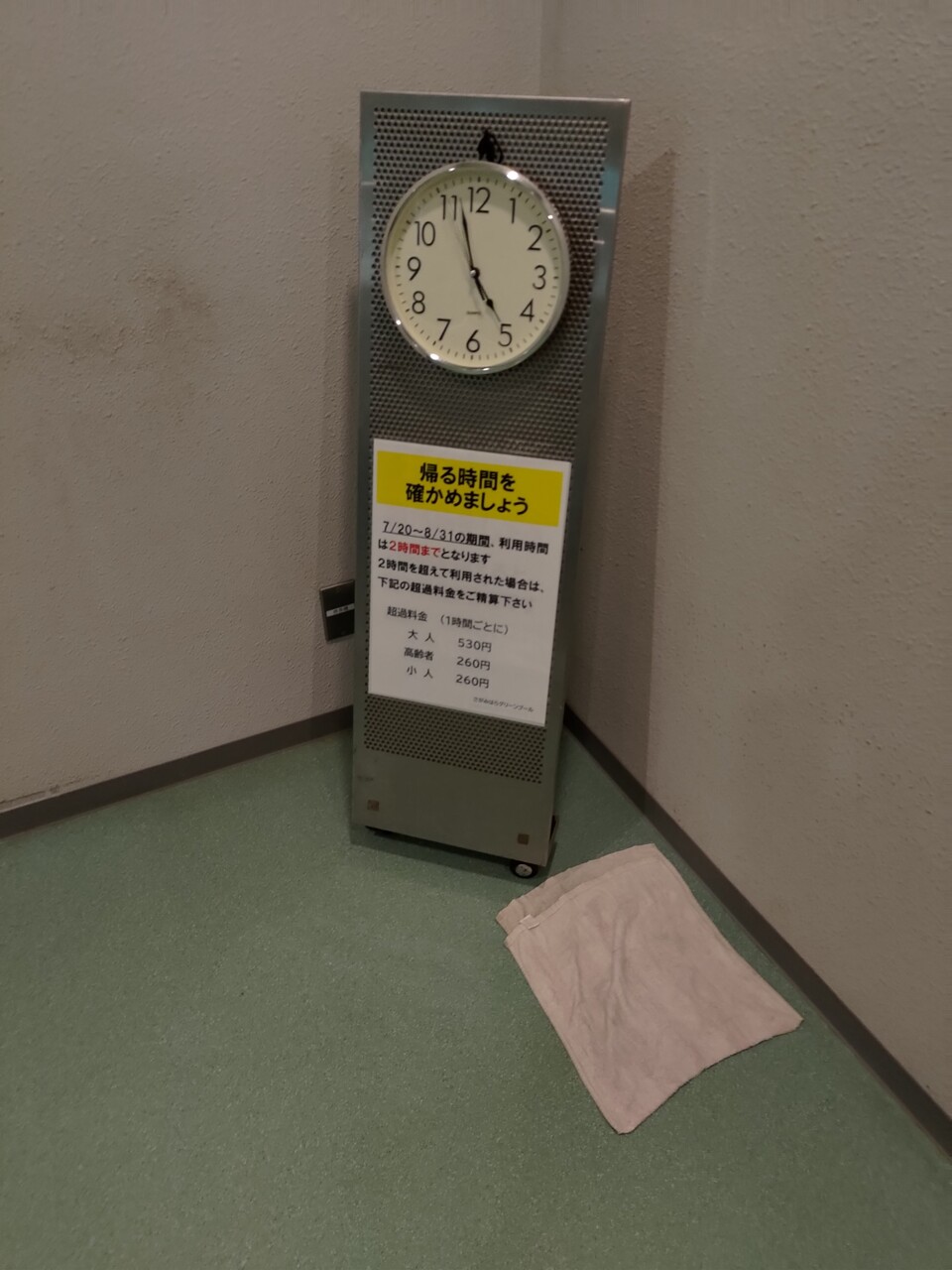 いまさら知ったのだが、グリーンプールは4月からプール利用時間が2時間→無制限(ただし夏は除く)にかわってた。どうりで入場ゲートで表示される退出時間が遅い時間になってるわけだ。更衣室に置いてあった退場時刻を表示する機械も撤去されてたし。