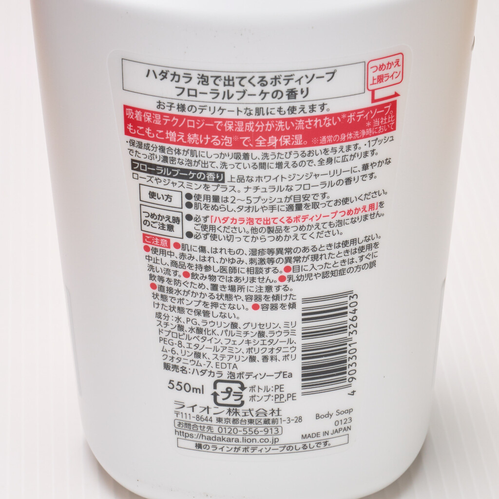 香りは甘くないフローラル。2プッシュをタオルにだして全身を洗ったが最後まで泡が残ったのは使いやすい。シャワーで流しただけだがぬめりがなく使いやすい。匂いは風呂から上がって3時間くらい持続したのでちょっとくどいかも。