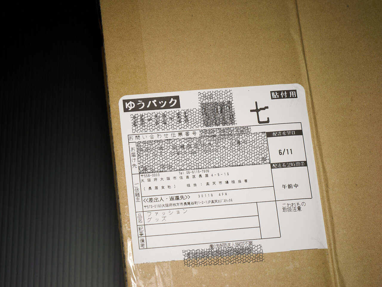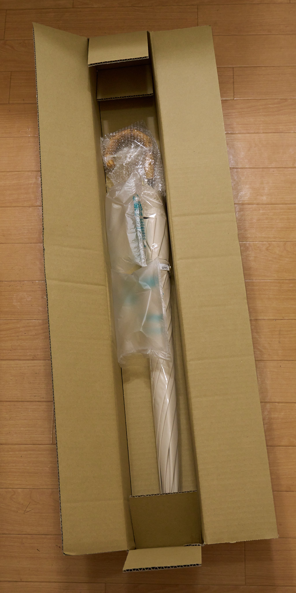 大阪から届いた。長傘を通販で買うとこういうパッケージングになるのか。