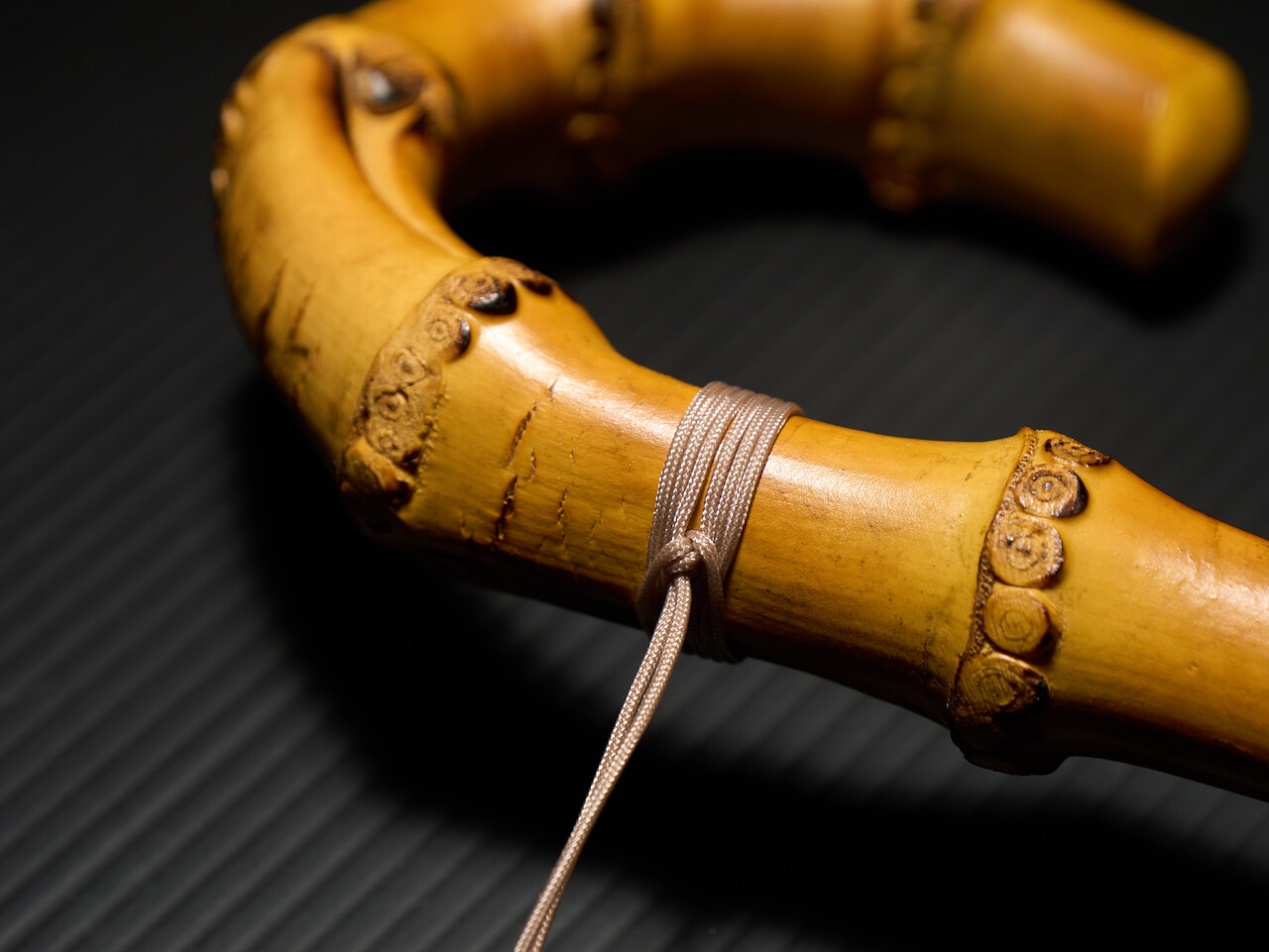 タッセルの紐は謎の結び目で括り付けてあった。よくわからんけど紐の下くぐらせたりしているうちに外せた。