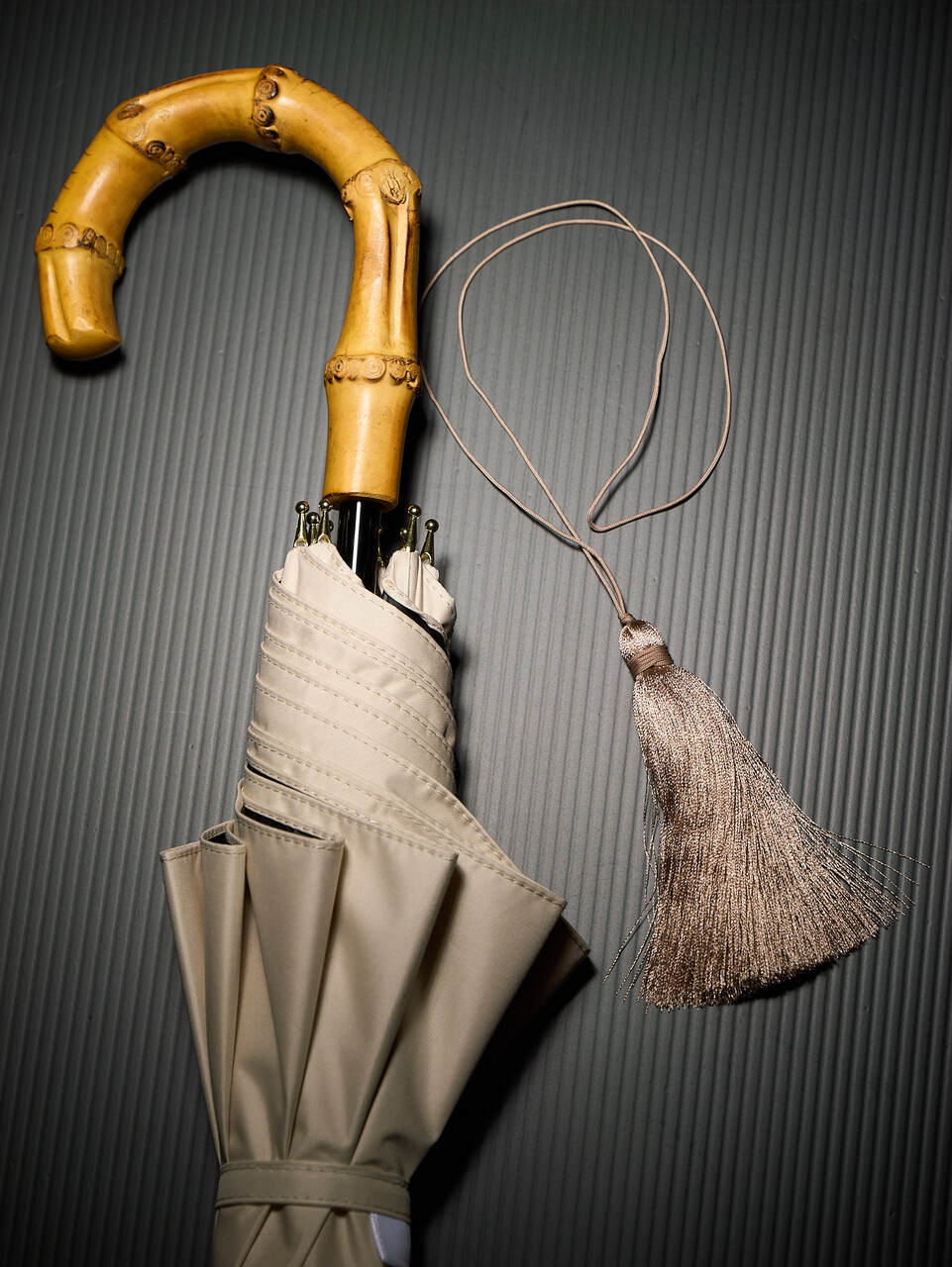 - ハンドルと石突きが短かく作られていて全長が短かいのも評価ポイント。手に持って歩いても地面につかないのがよい(身長はヒールの高さにもよるけど)。