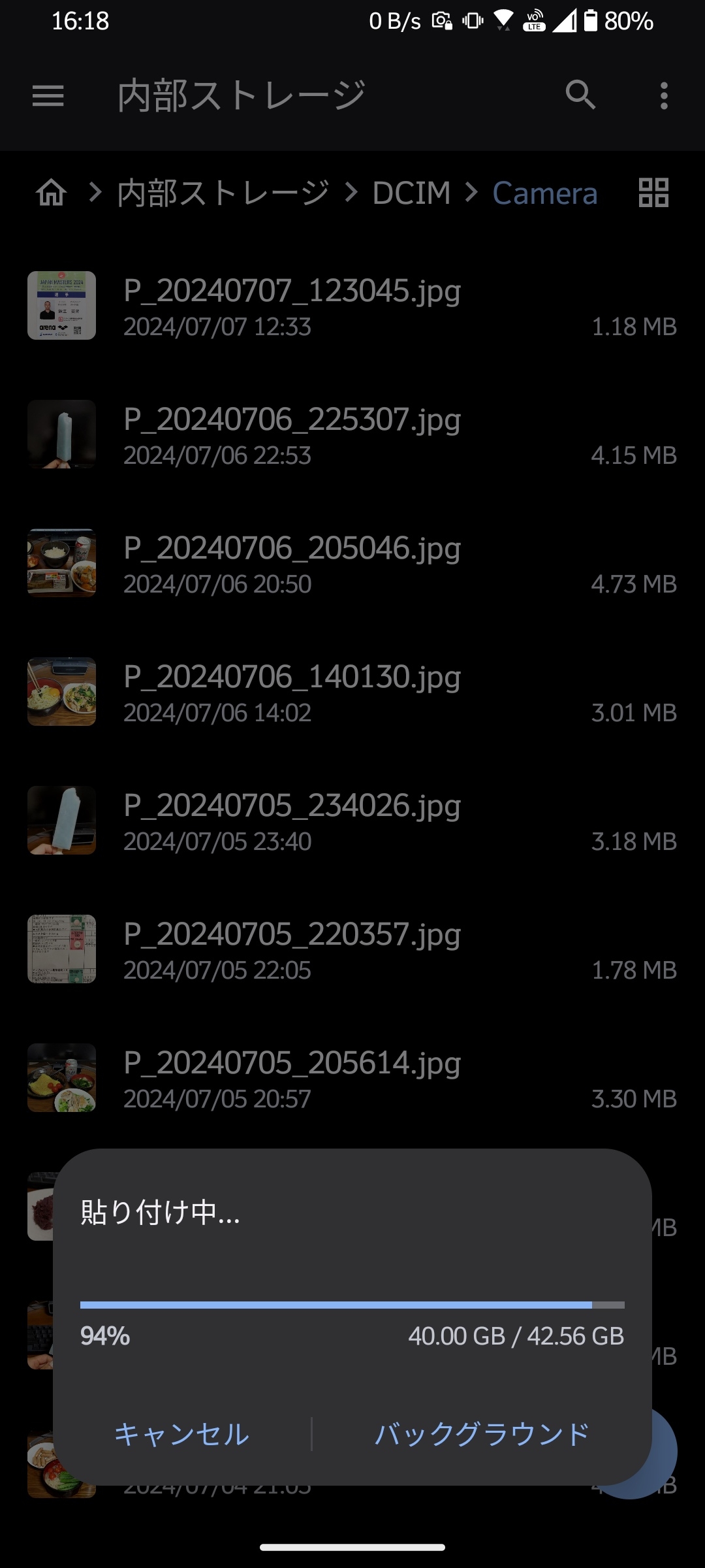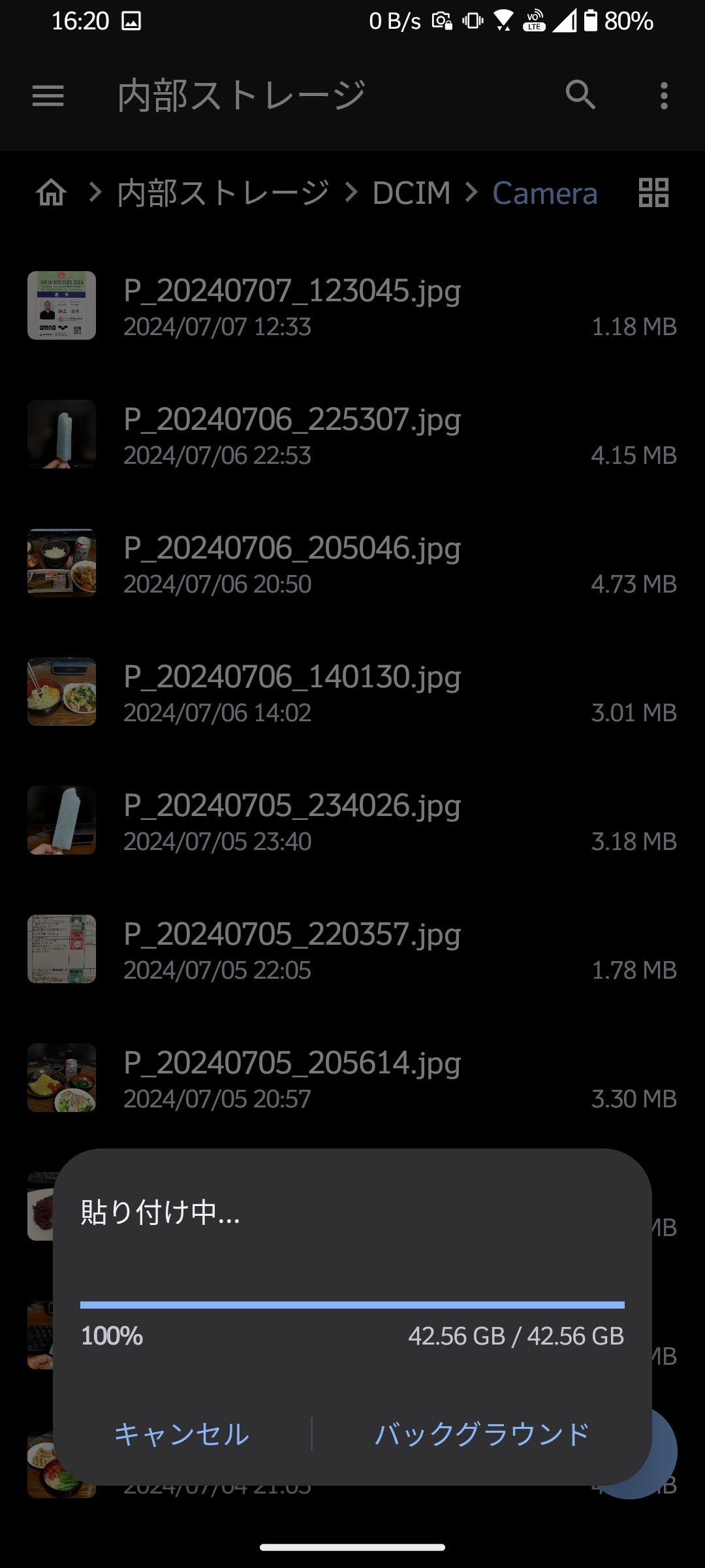 そして写真を内蔵メモリからSDカードに移動させる。結構時間がかかった。しかもいくつかの写真の更新時刻がおかしくなっとる。