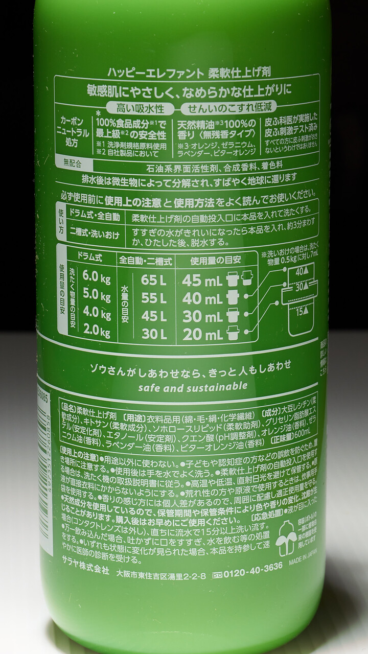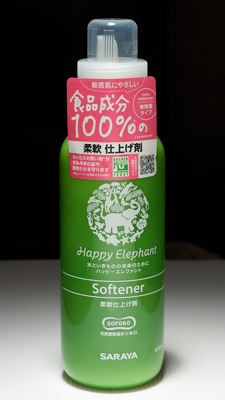 があがってて、陽イオン系界面活性剤をつかってないハッピーエレファントを買ってみた。