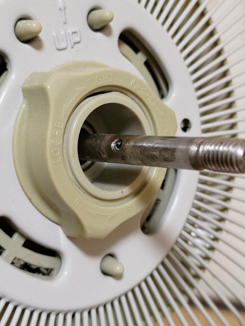 扇風機を分解したら羽を止めるピンが砕けてしまい終了。たぶんピンは金属だとおもうけどプラスチックのように砕けている。
