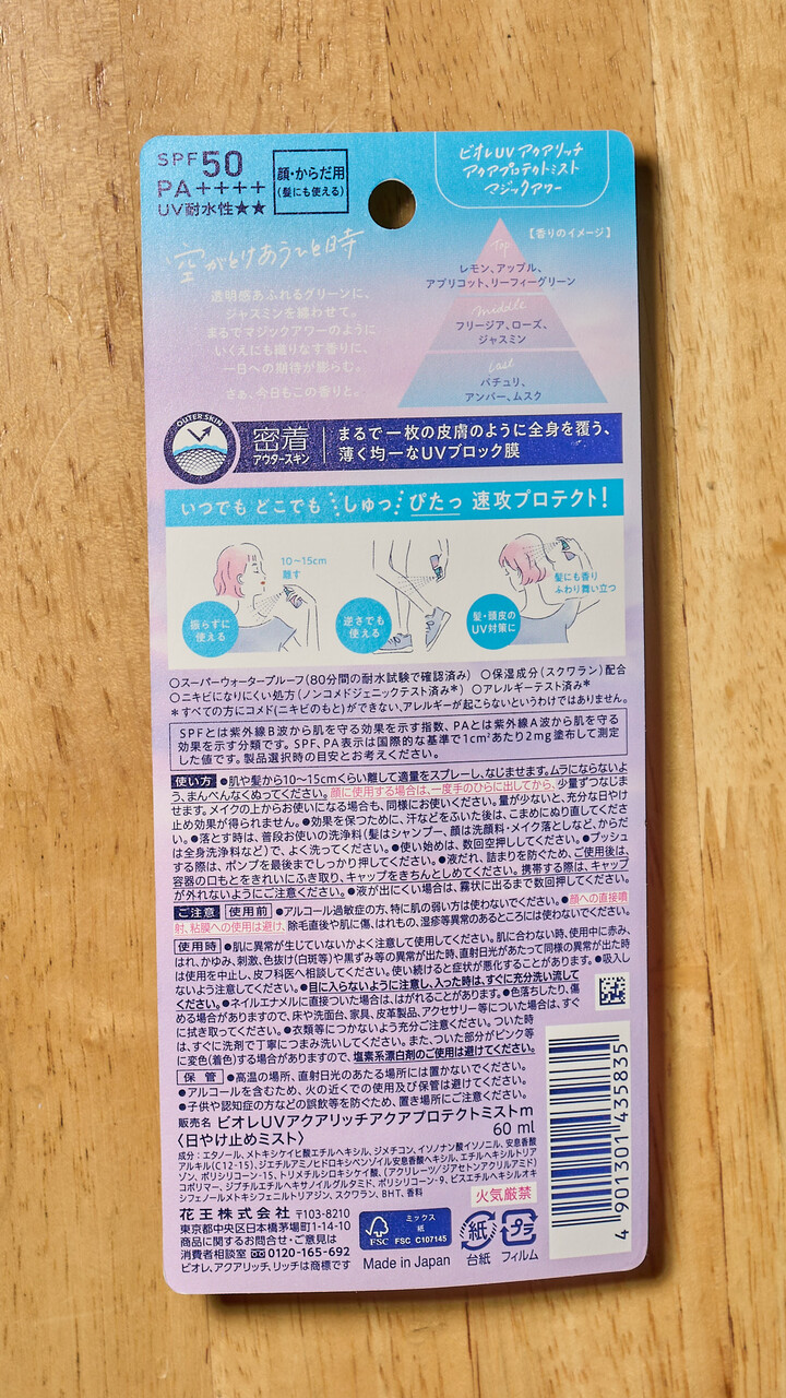 手の甲用に欲しかったのでエアロゾルタイプも買った。これは耐水性が★★。