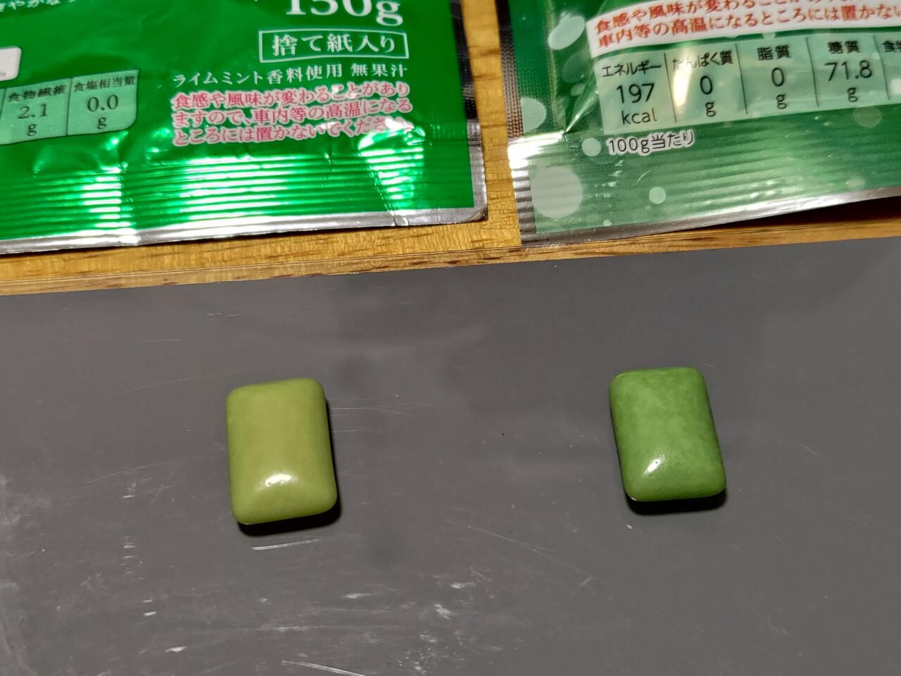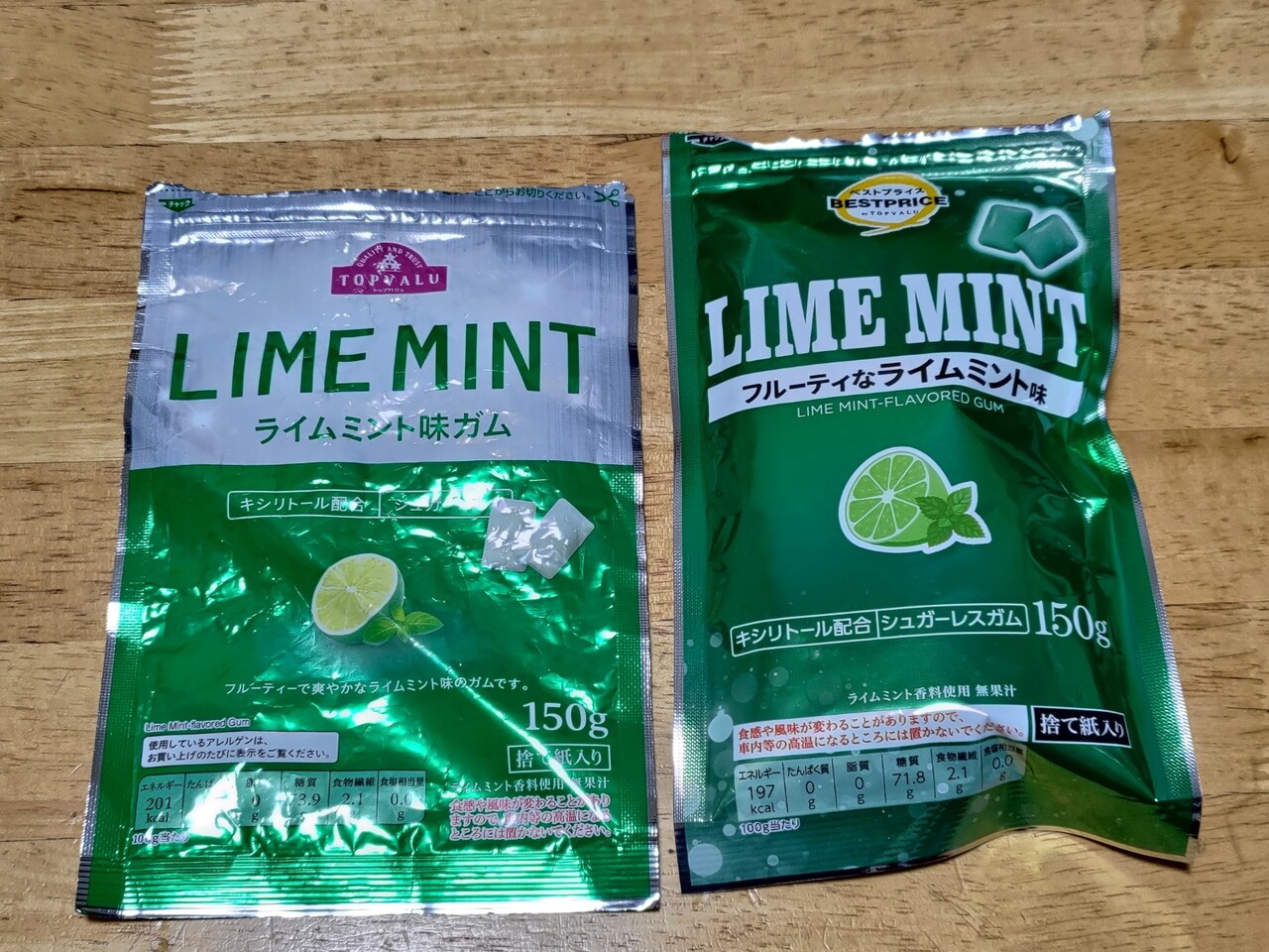 仕事中に噛んでるガムはたぶん10年くらいずっと左のやつを買ってたけど1年くらい前からダイエーの店頭からなくなってイオンで買ってたけどこのまえ買いに行ったらモデルチェンジしてた。TVノーマルからベストプライスに格下げされてて、成分もちょっとかわってた。