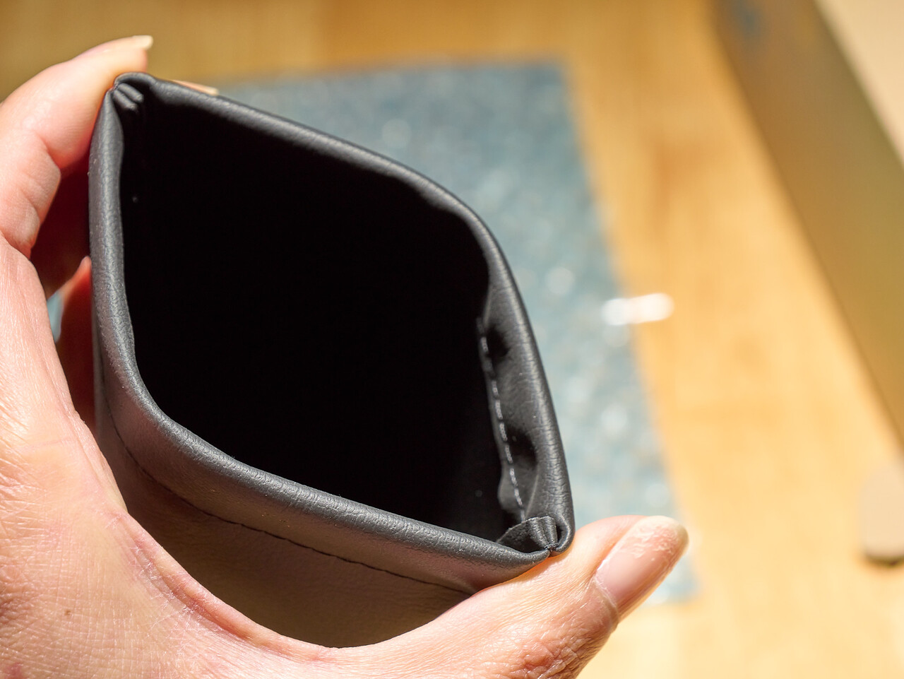 付属のソフトケースは入口に板バネが入っているタイプ。