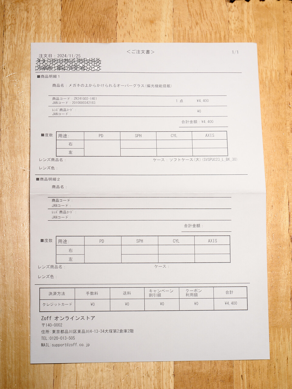 こんどモビリタに行く予定で、サングラスが必要と書かれていたのでメガネの上にかけるサングラスを買うことにした。度付きサングラスを作るほどでもないしクリップタイプの跳ね上げ式のでもよかったんだけどなんとなく。コールマンのやつのほうが安かったがサイズがわからなかったのでやめた。あと、モビリタで必要とされてるのは路面に水を撒いて反射がきついからだとおもうのでスモークだけではなくて偏向機能つきのもので。車を運転するとき用のメガネはフレームの横幅が143mmあるので、3種類あるうちの1つしか合わなかった。4400円。