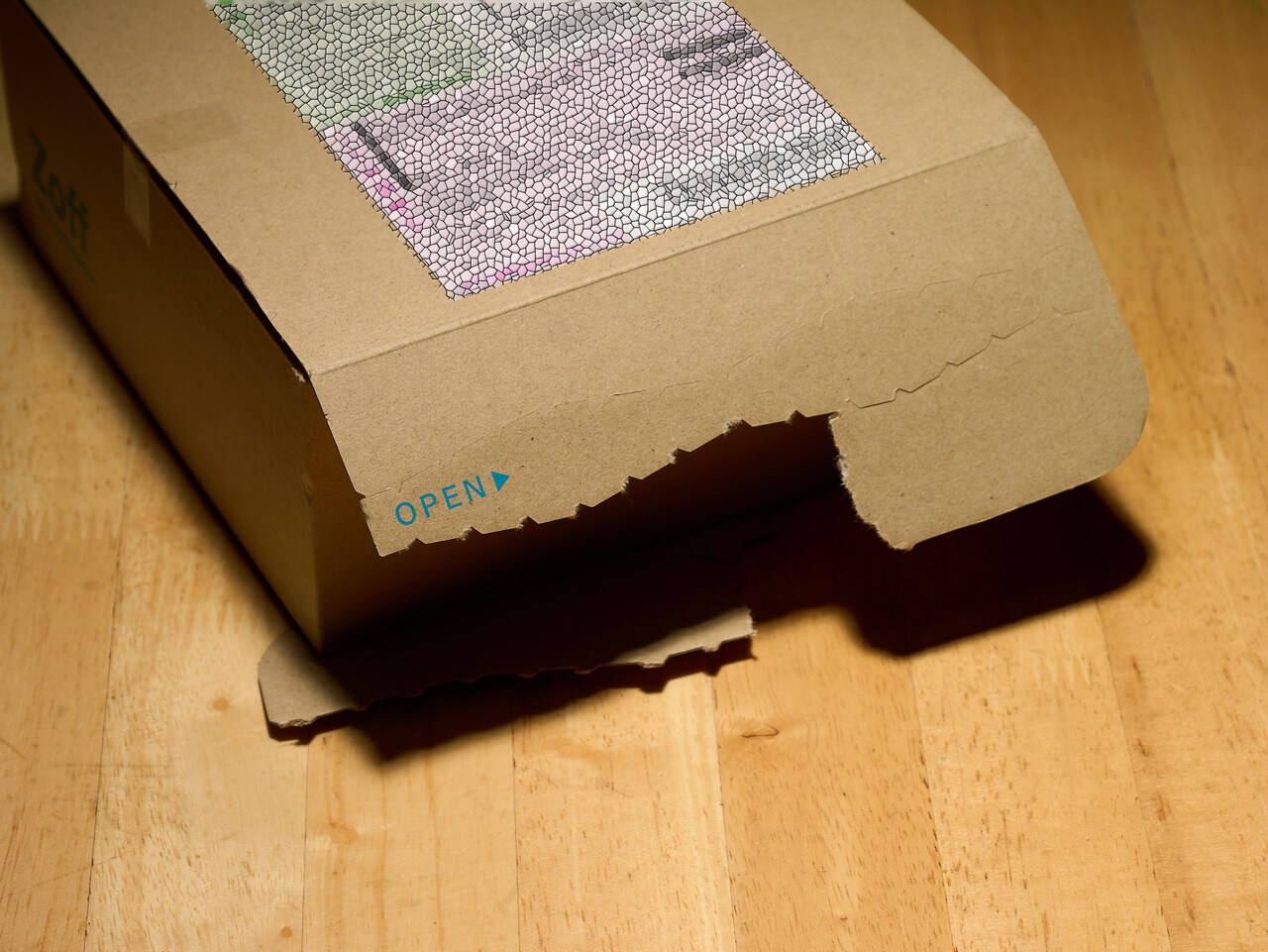箱を開けようとしたけどうまくダンボールが抜けず破り開けた。