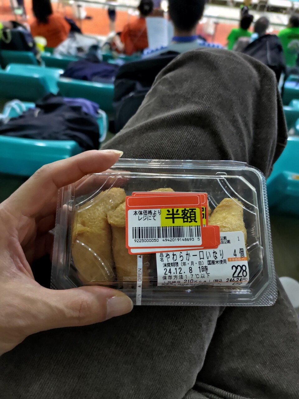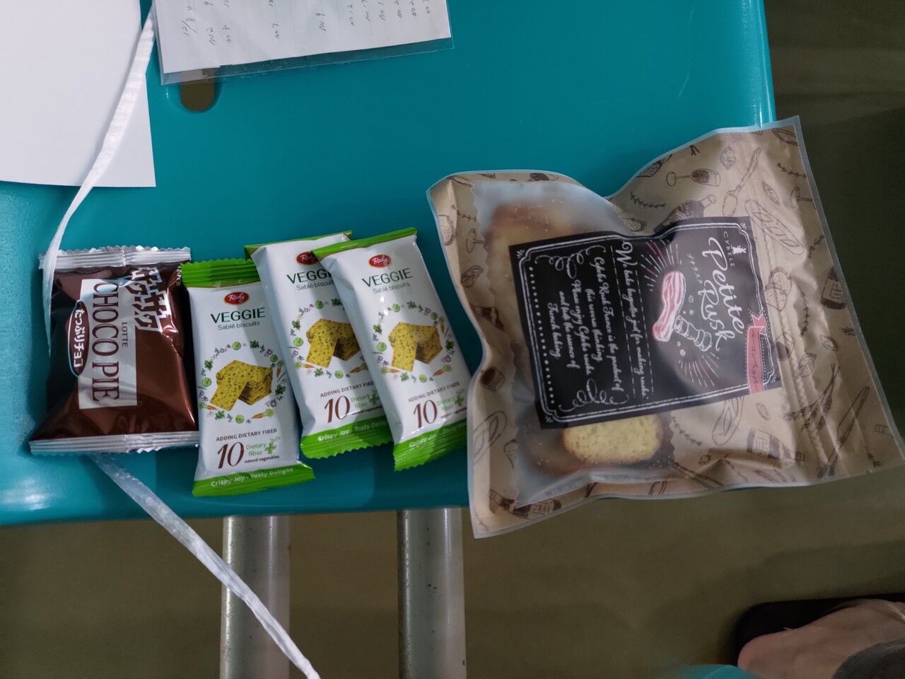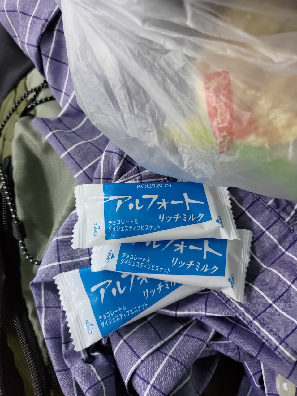 チームのひとのビデオを撮りながら昼食食べながらもらったお菓子をたべながら。