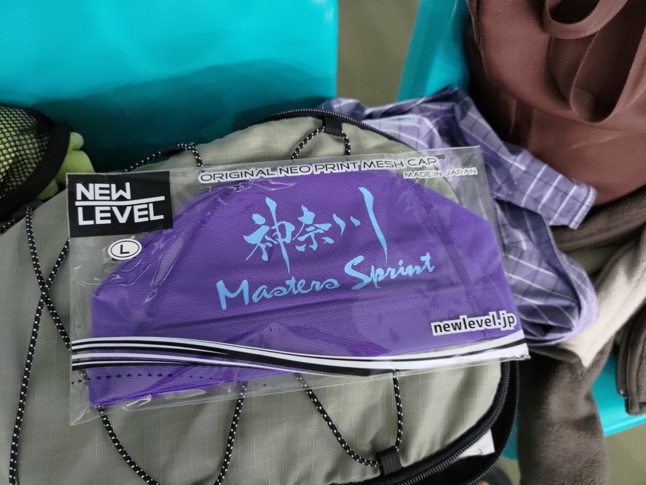参加賞はスイムキャップ。メッシュタイプは額に跡がつくのがきらいなんよな...