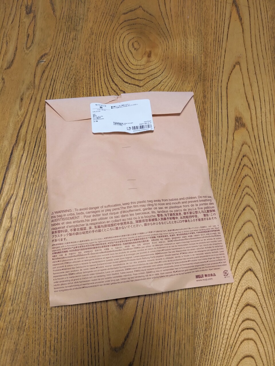 母はLLがいいといってたけど、サイズ表からするとMなのでMを注文した。きりっぱなしなのでごろつきもなく具合がいいようだ。