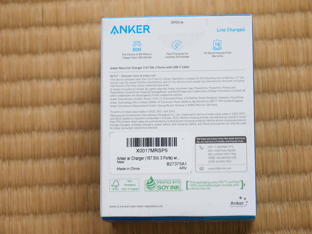 RX-8のセンタートンネルにある電源ソケットにUSBチャージャーさしてナビのスマホに給電したくてamazonやらkakakuをみてたら、そんなに高くないわりに3ポートもあってPDだしAnker Nano Car Charger (167.5W, 3 Ports) with USB-C & USB-C ケーブルをぽちった。4990円。全ポートを使ったときでもMAXまで出力できるのばよさげ。そういう使い方をしたこともそんなに電気を食うデバイスも持ってないけど、順番にデバイスを挿していったときにPDのネゴがはしって一瞬供給電力が下がるらしいが、このチャージャーの仕様なら再ネゴが走らないので安心できそう。