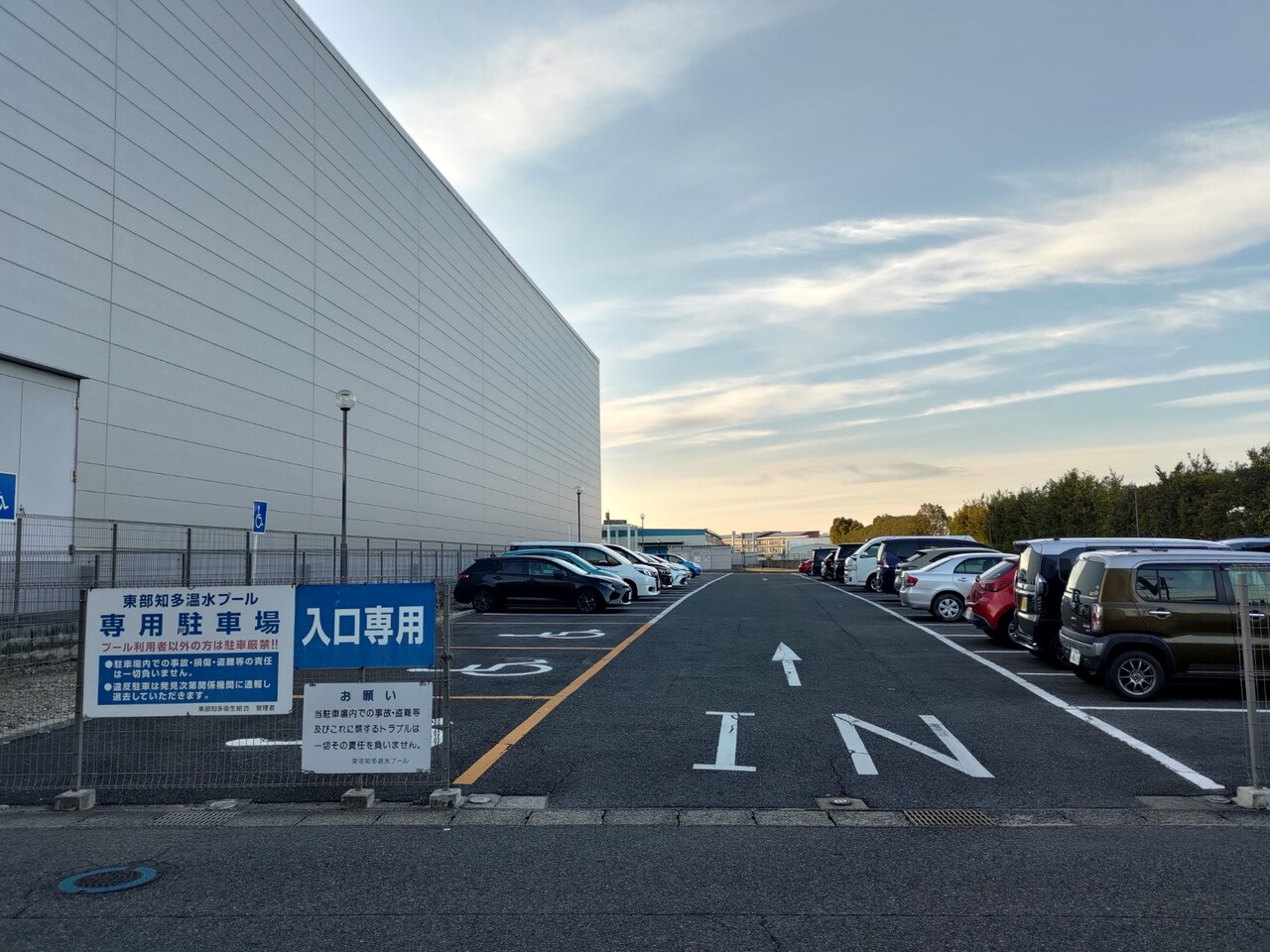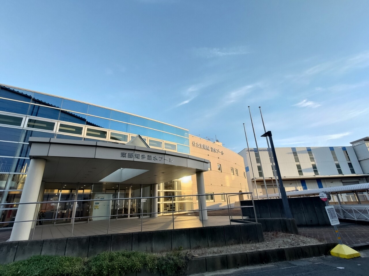 武豊のプールが閉館中なので、ちょっと遠いけど住友重機械温水プール(東部知多温水プール)へ行ってきた。行きはあまり右左折がない常滑→半田→東浦→大府という経路をえらんでみたが、半田で渋滞がひどくてかなり時間がかかってしまった。ナビでは30分ちょっとという予想だったが1時間以上かかった。しかも最後の曲がり角の案内が出るのが遅すぎて通り過ぎてしまい、再度プールに近付いたら分岐の案内が早すぎて別の道に入ってしまい、3度目の正直でやっとプールに到着した。