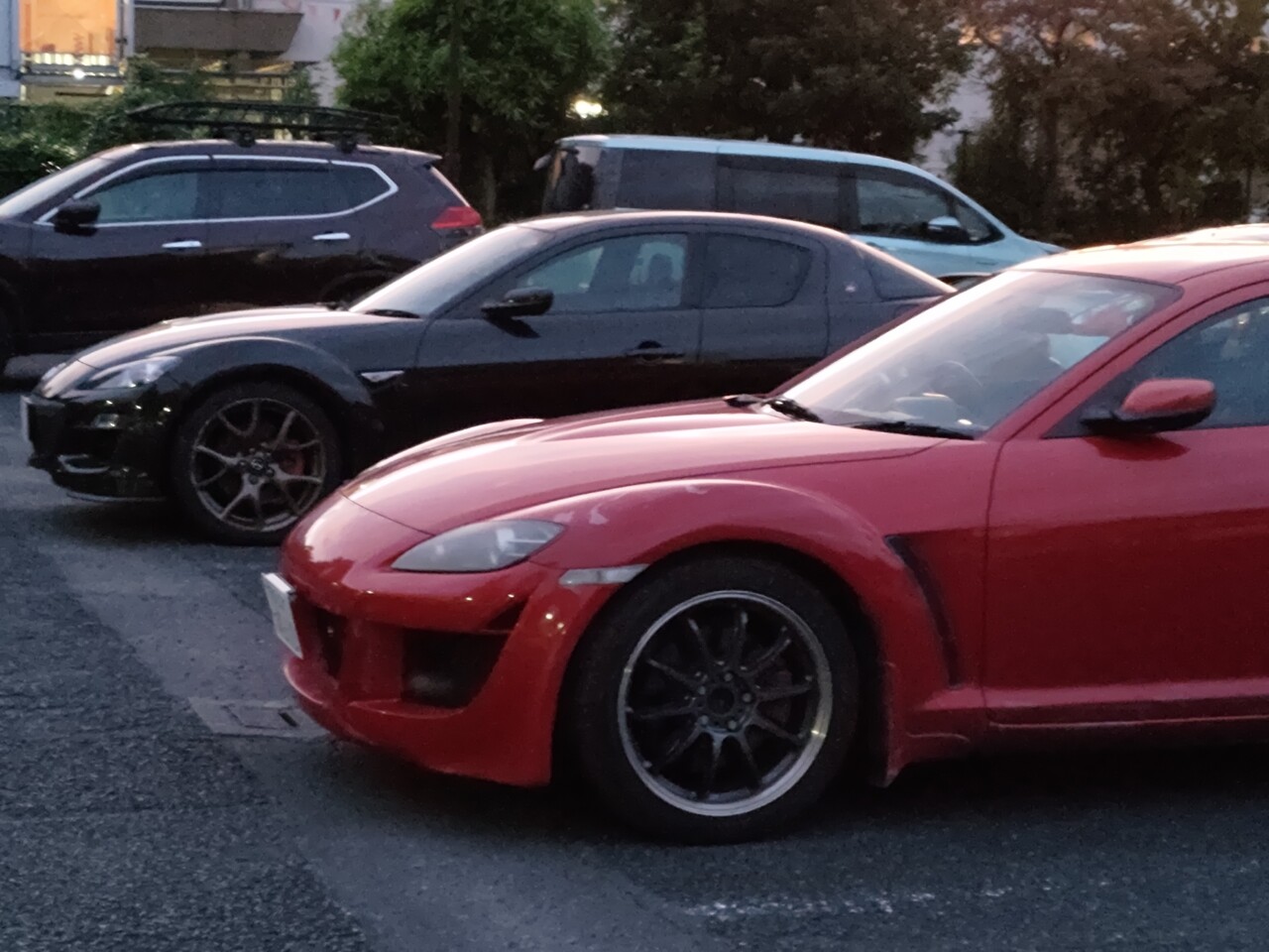 駐車場にもどったらRX-8 spilit Rがならんでた。塗装綺麗、タイヤ薄い、マフラー太いだった。