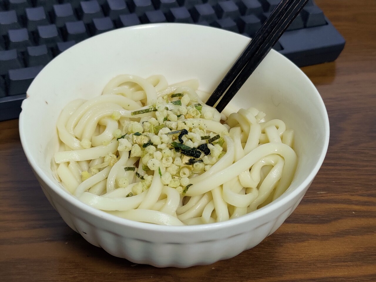 基本的にあげ玉の風味で、ときどき青じそが香る。
