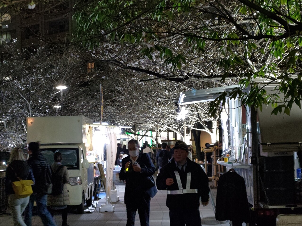 出社したついでに五反田のプールヘ。ちかくの目黒川ぞいにある公園はライトアップされてた。けっこう外国人観光客が目についた。