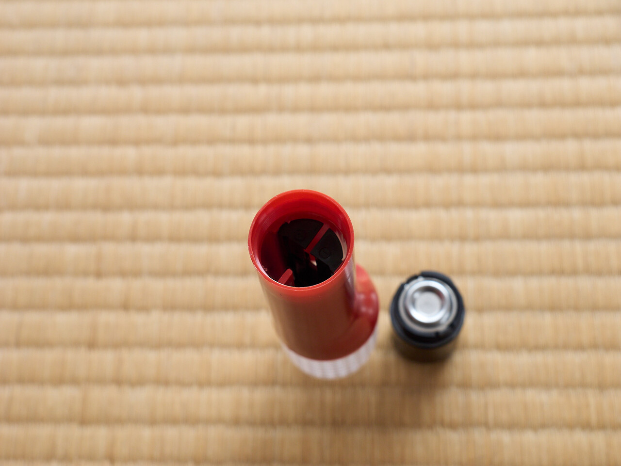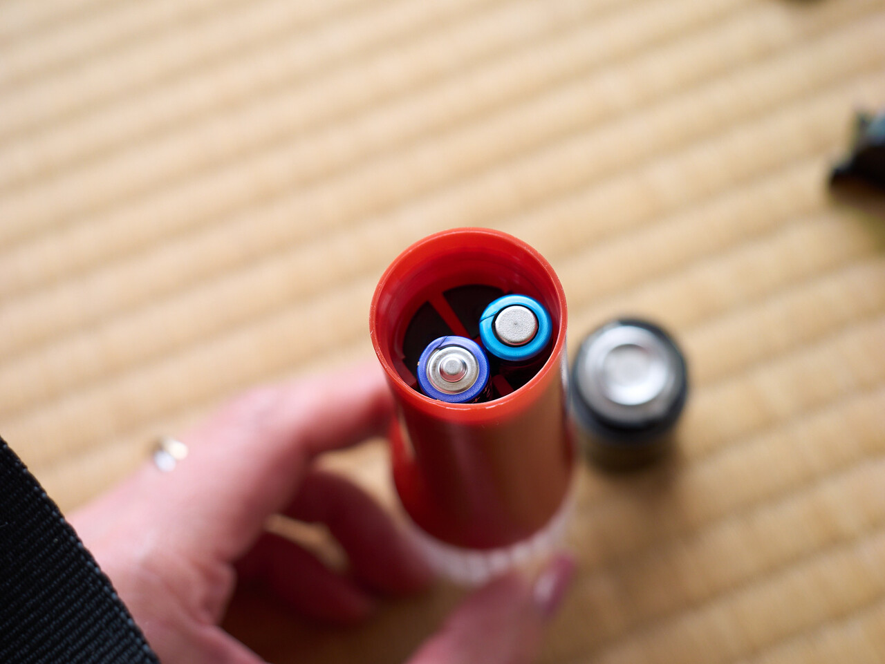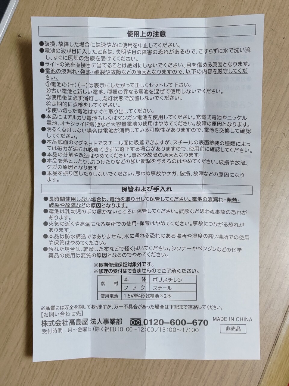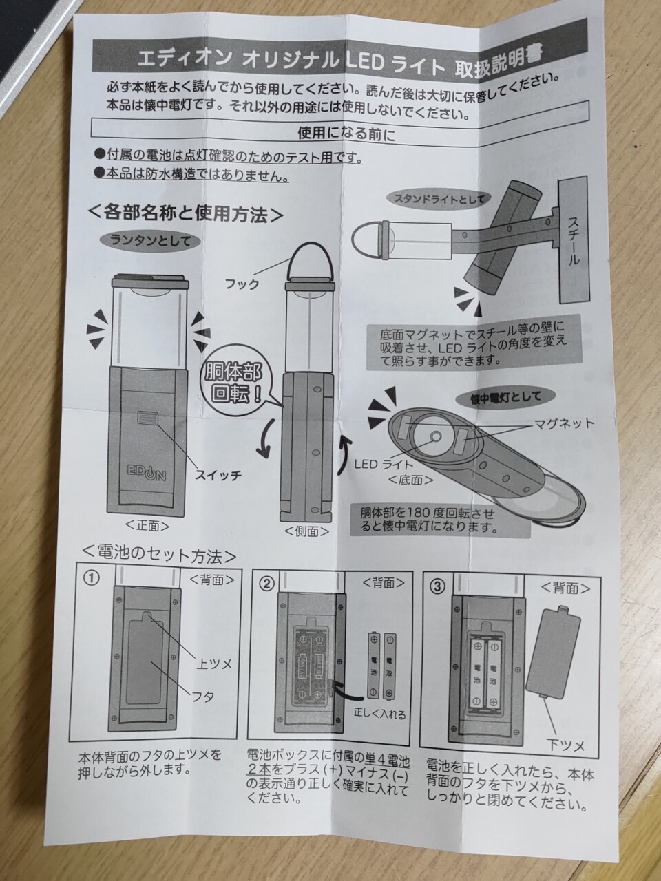 停止表示灯は単4を4本だったが、非常信号灯は単4を2本。