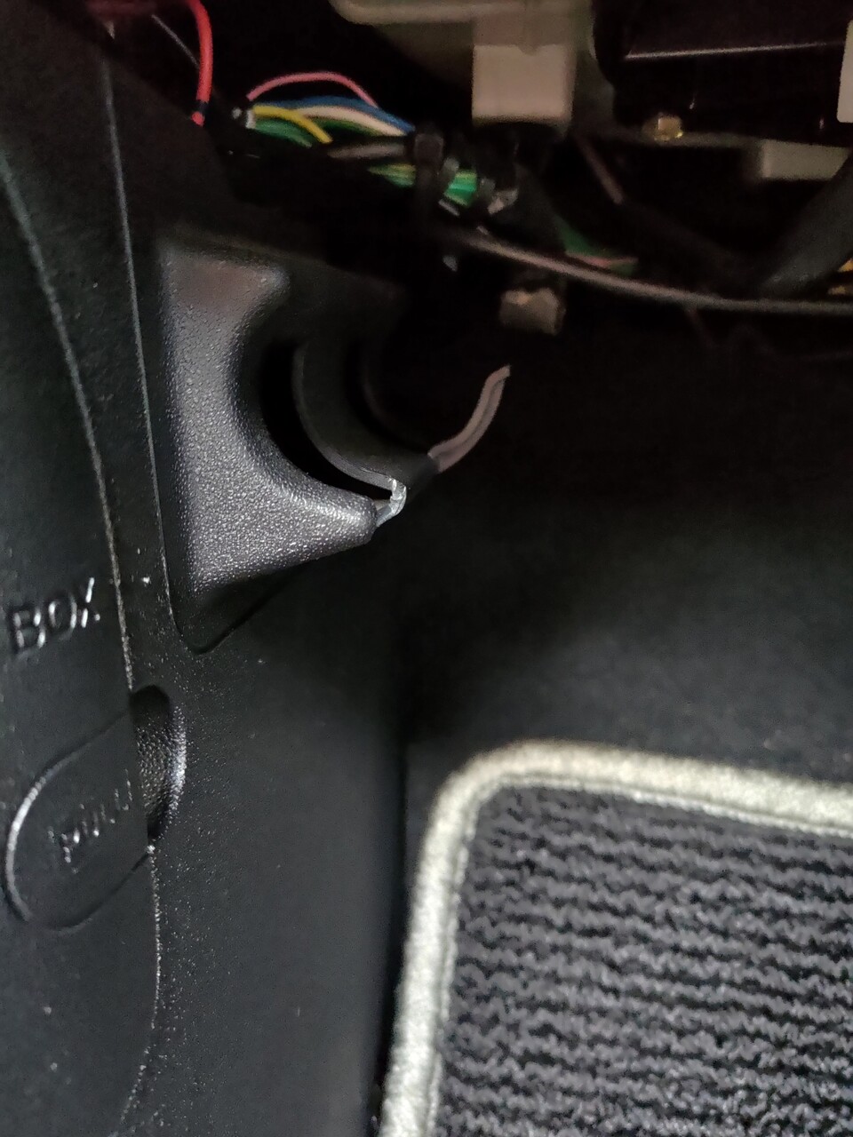 どこにもひっかからないので倒れてきてハンドル・ダッシュボードの上に載ってる状態。