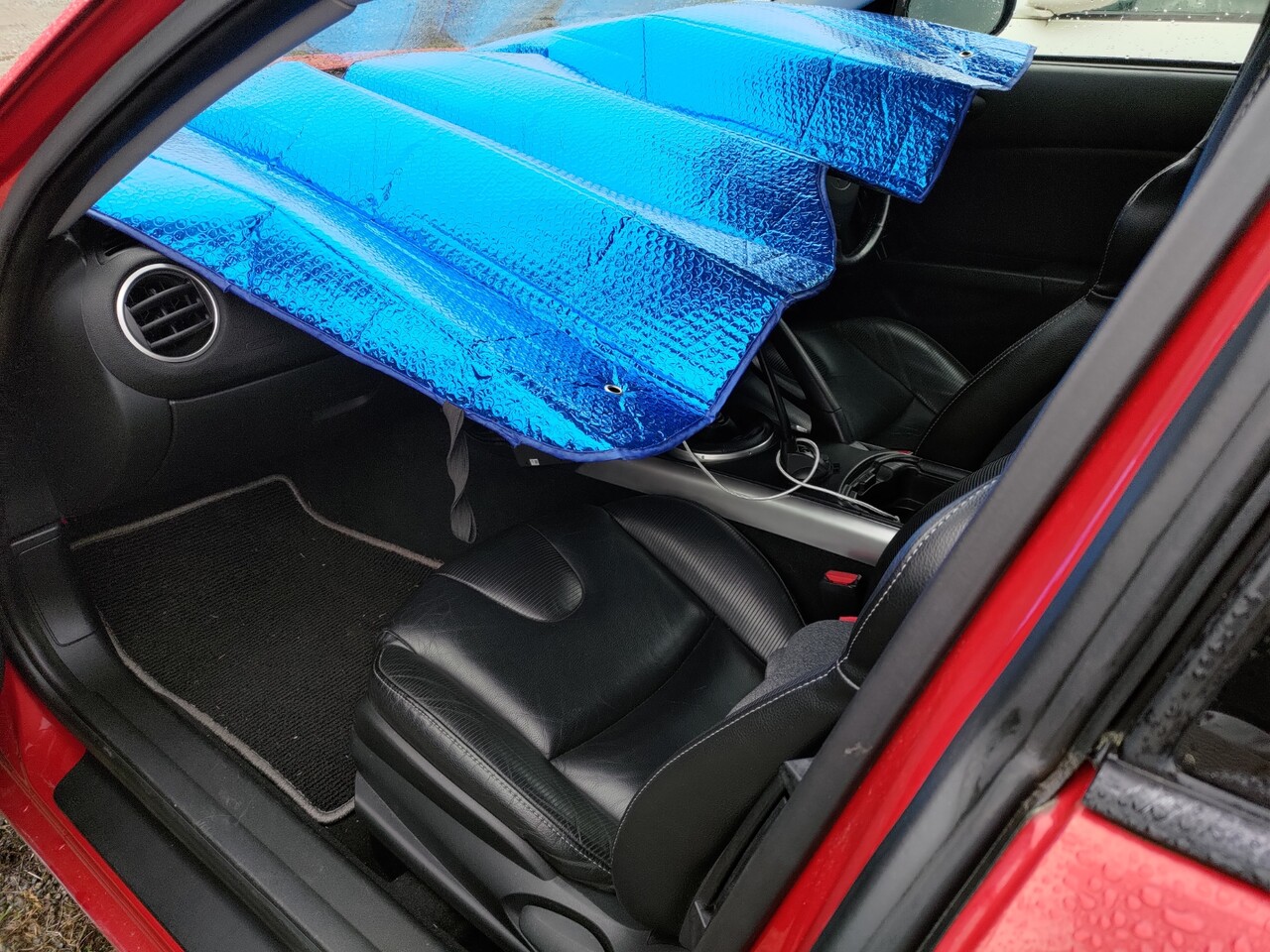 実家でもらったつかってない蛇腹折り畳みのサンシェードをつかってたが、サイズがかなりおおきくてRX-8にまったくフィットしないのでどうしたものかとおもっていたが、CX-3用のがサイズ的にぴったりらしいのでアマゾンでやっすいやつを買ってみた。2060円。