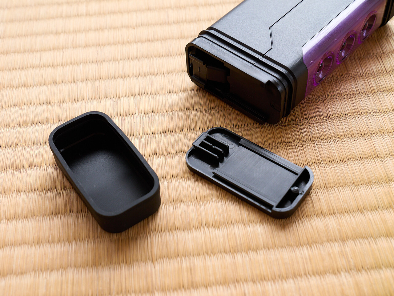 このRX-8、いつエンジン不調で止まってしまうかぜんぜんわからんので三角板の代わりに停止表示灯を乗せることにした。ちなみに買った車に三角板は載ってなかった。防水のために電池ボックスへのアクセスがちょっとめんどくさい。