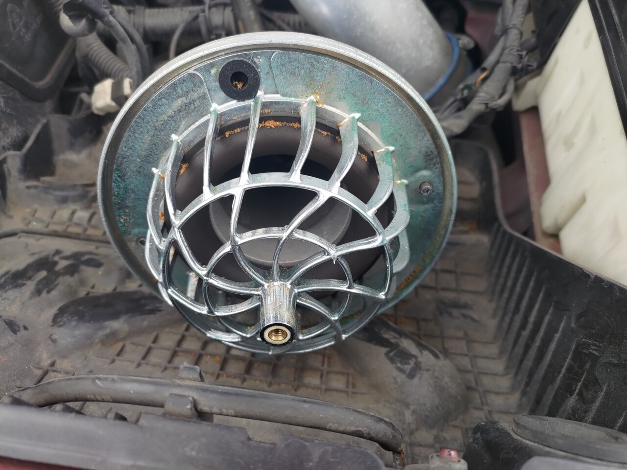 そんでもって外枠の下側になってた部分が折れてて、よくみたらプラスチック製だった。外側はちょっとくらい折れても問題ないけど、内側の枠が折れて吸い込まれたらエアフローセンサーやコンプレッサーが即死しそうだ。金属かプラならもろくならない素材をつかってほしいところ。