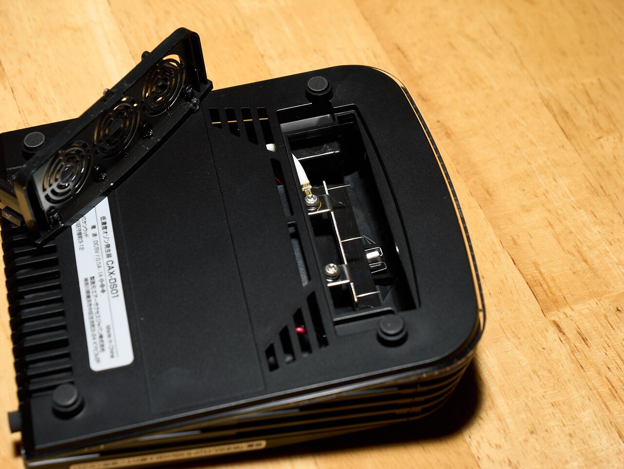 半年前に買った低濃度オゾン発生器 CAX-DS0、気づいたらケーブルの被覆が裂けてあとちょっとでショートしそうなところまできてた。