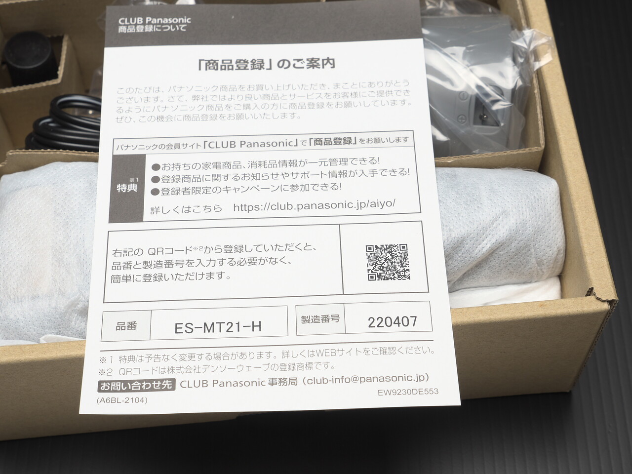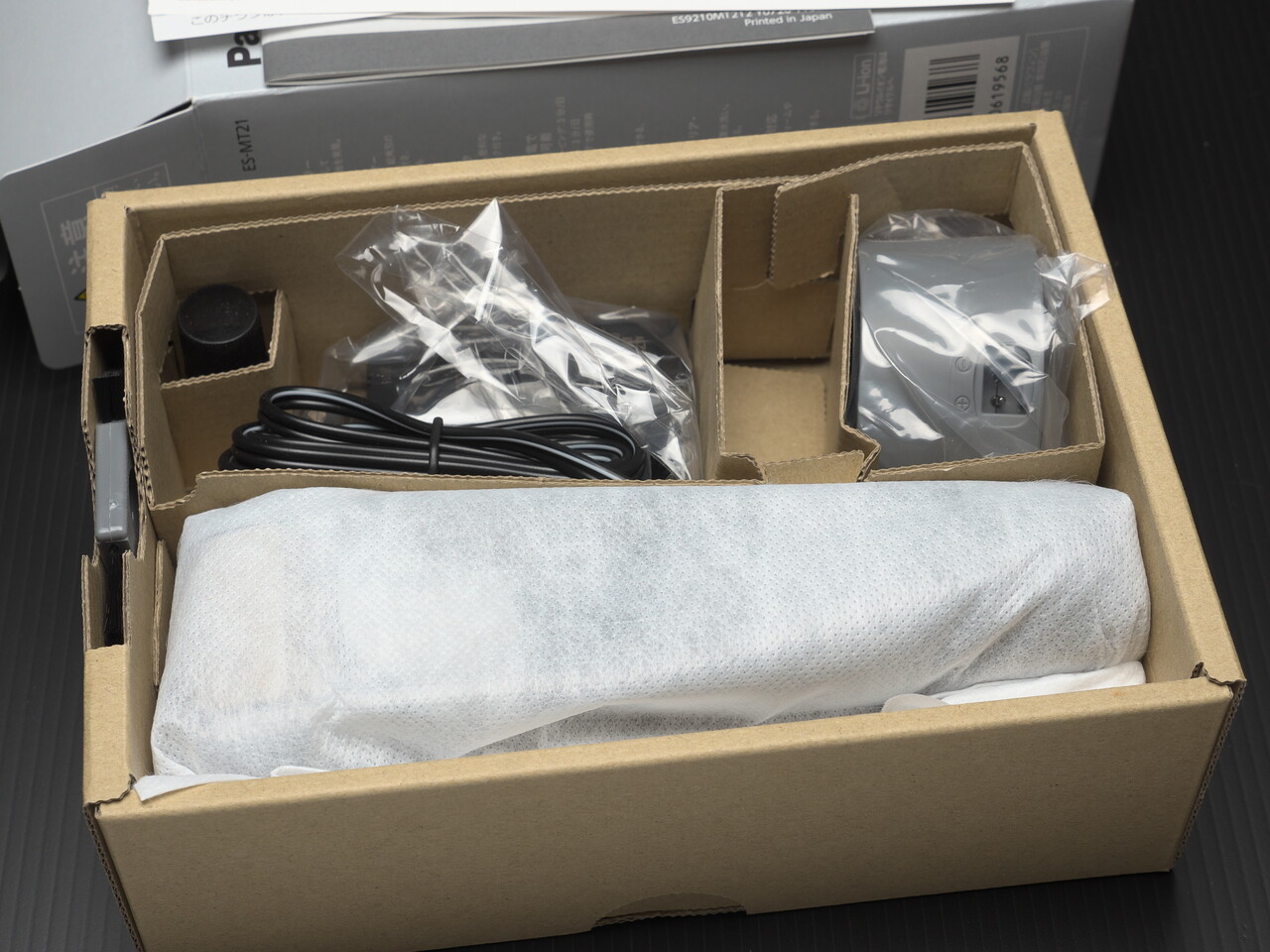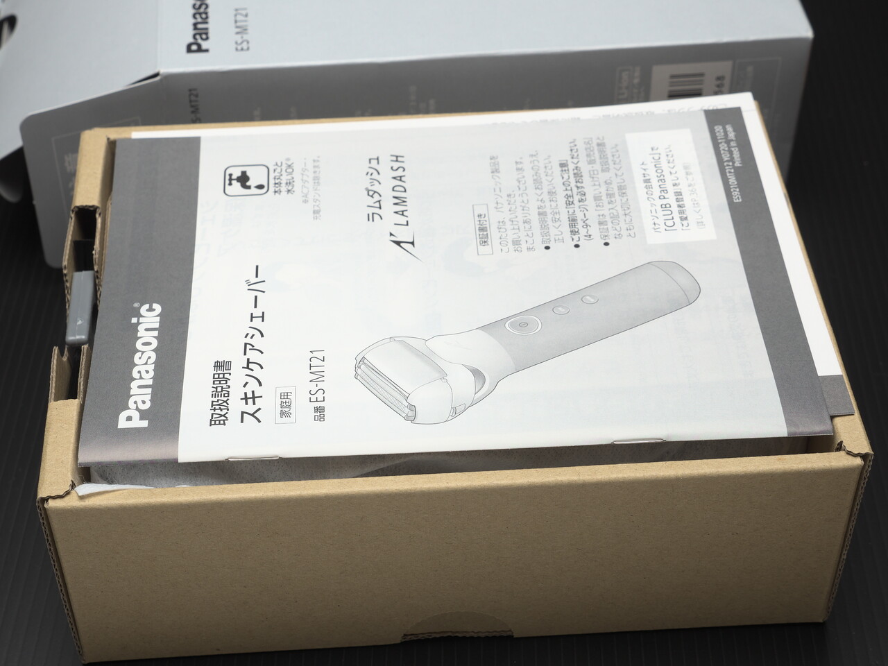 さらに開封。説明書・クイックマニュアル・チラシが上にのっていた。このチラシにも書いてあるけど化粧水をつけてイオン導入しながら髭剃りすると髭クズが顔にくっつくのでサラサラタイプの化粧水を使うべきなんだろうな。