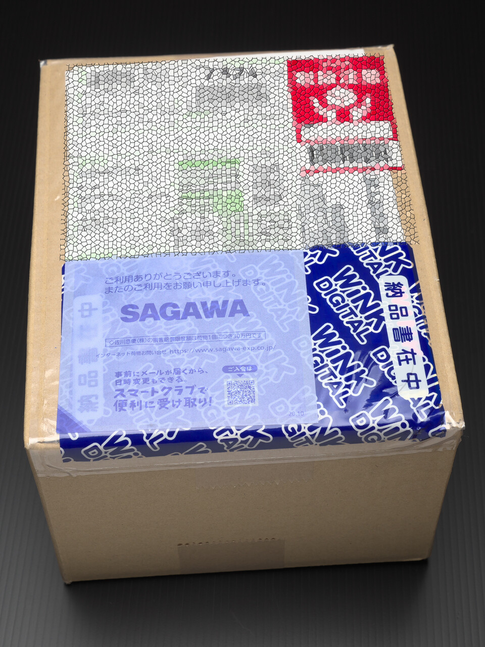 納品書はダンボール箱のそとに貼り付け。
