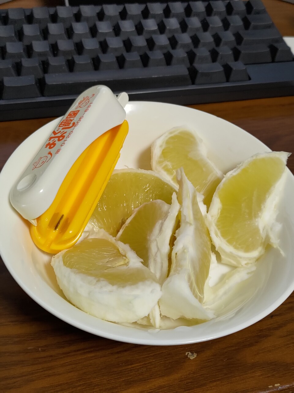 冷蔵庫で冷やしてから食べてみると、チョコレートの甘味と文旦の酸味がキャンセルして最低の仕上がり。チョコレートを食べてから文旦をたべるとおいしかったのだが、単純に組み合わせただけではダメだなあ。