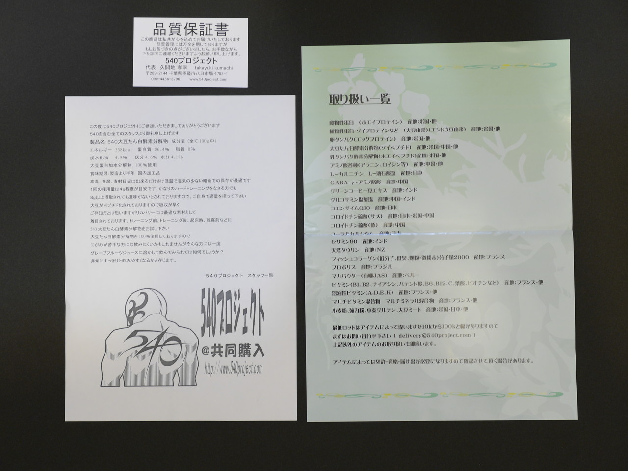 | 成分 | 540大豆たん白酵素分解物 | 540コラーゲンペプチド |