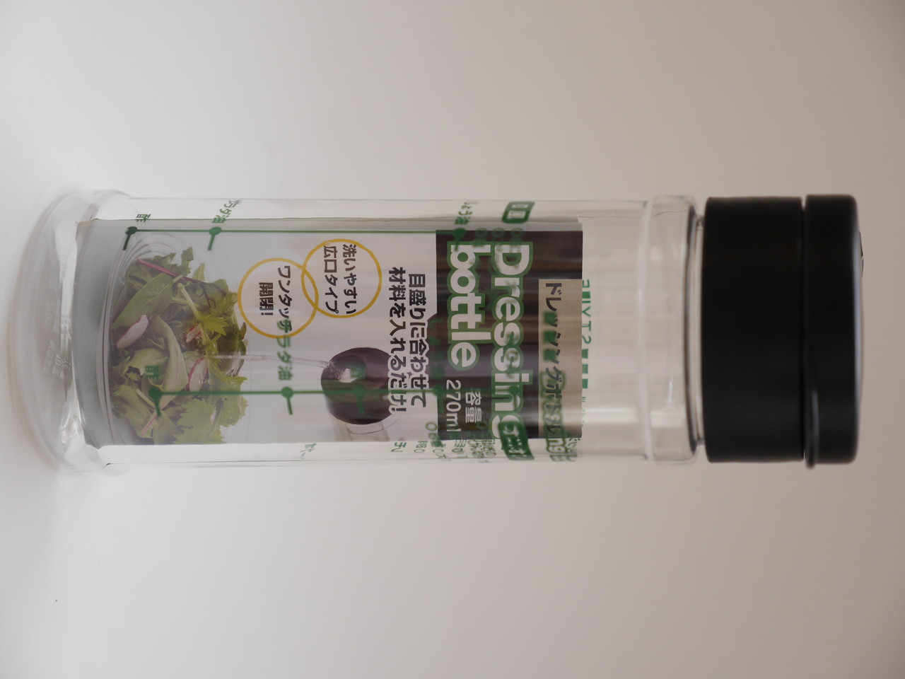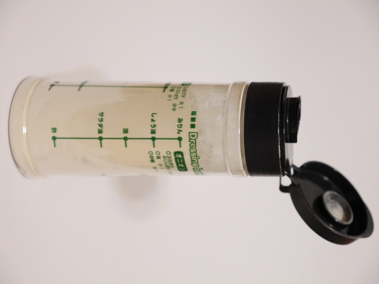 [2013-06-15] このドレッシングボトルだとふたの開け閉めで粉がとぶのでオイルボトルを買ってきて入れてみた。容器を押さないと粉が出てこないが飛び散りはすくないようだ。