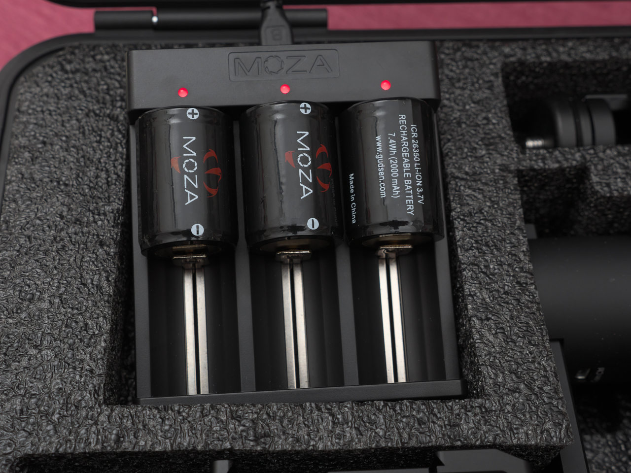電池と充電器。充電器は別途USB(5V 2A)を給電できるものが必要。