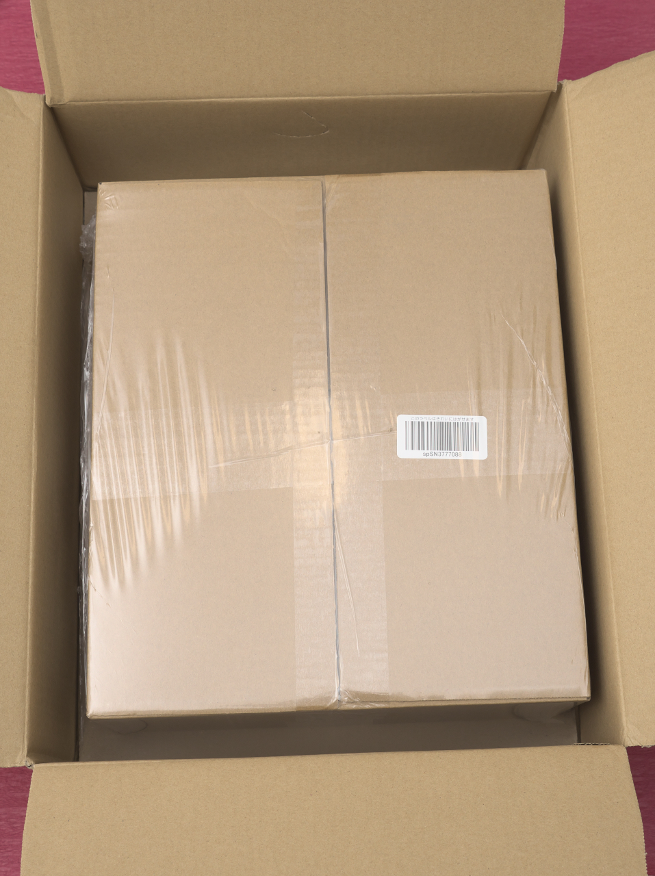 第2の段ボール箱(moman)を開封。紙切れと第3の段ボール箱が現れる。