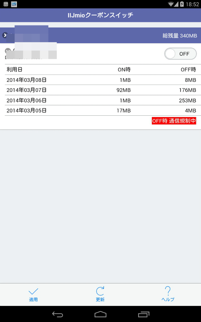 200kbpsなら使い放題だぜーとおもってネットラジオをかけっぱなしにしてたら規制くらった。規制食らうとクーポンなしにはほとんど何もできない状態になる。解除されるまで3日かかったぜ。