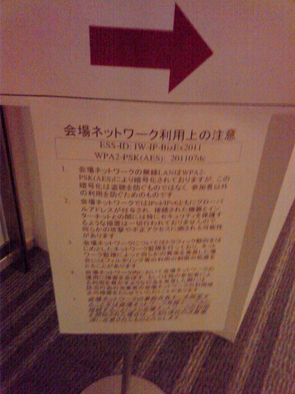 会場ではIPv6のアクセスポイントが設置されていたが、設定情報がスクリーンに出てないし紙にも印刷してないしめんどくさいのでスルー。