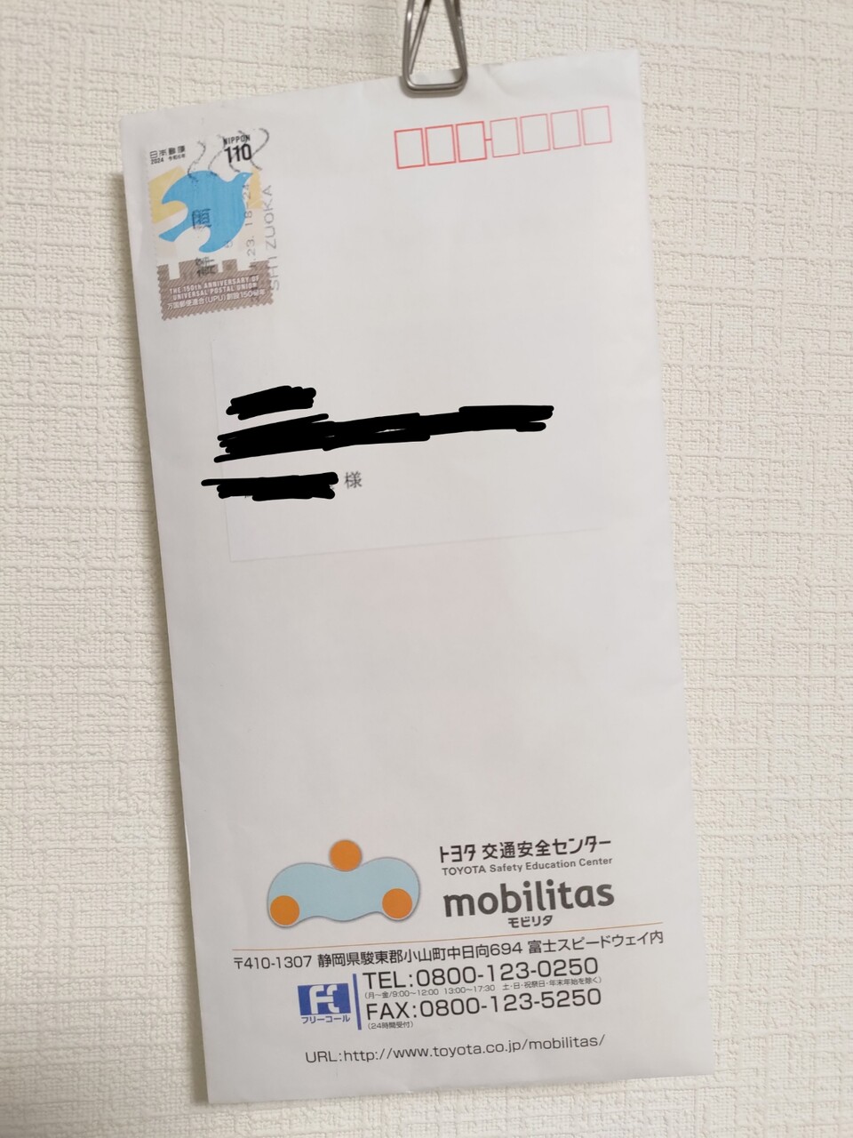 右側Aピラー近くにつけてみたところ。ぎりぎりスマホがみえる。高さ調整はできないのが残念
