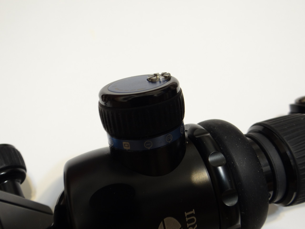 - 雲台のパン部分。ネジを締めてもアソビがある。雲台なしにカメラを三脚に直付けすると揺れはなくなる。