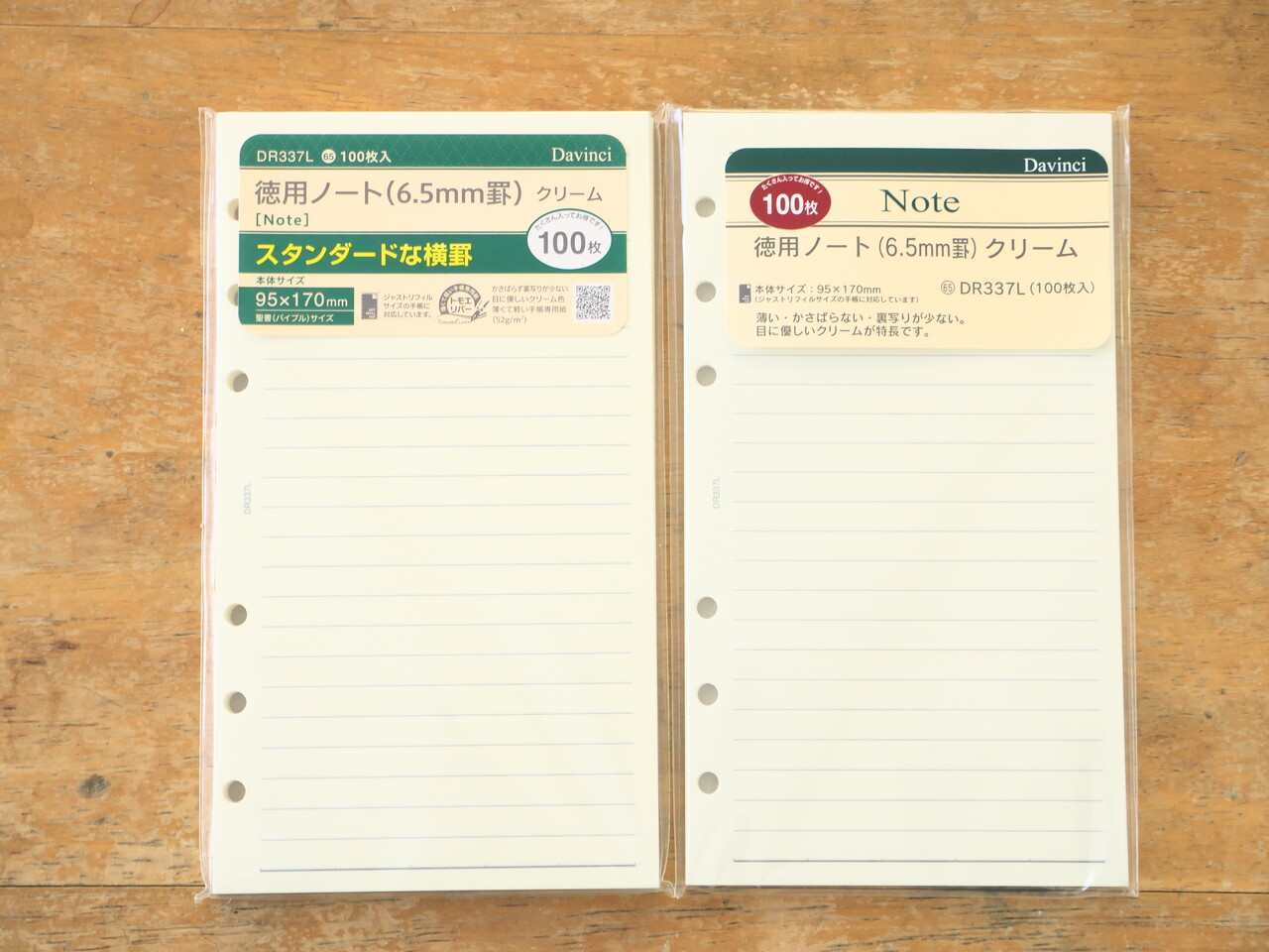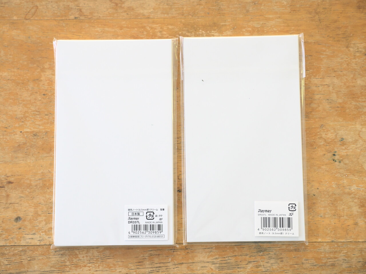 罫線ノートはパッケージデザインがかわっていたが型番は同じだし中身も変わってなさそう。左が新で右が旧。